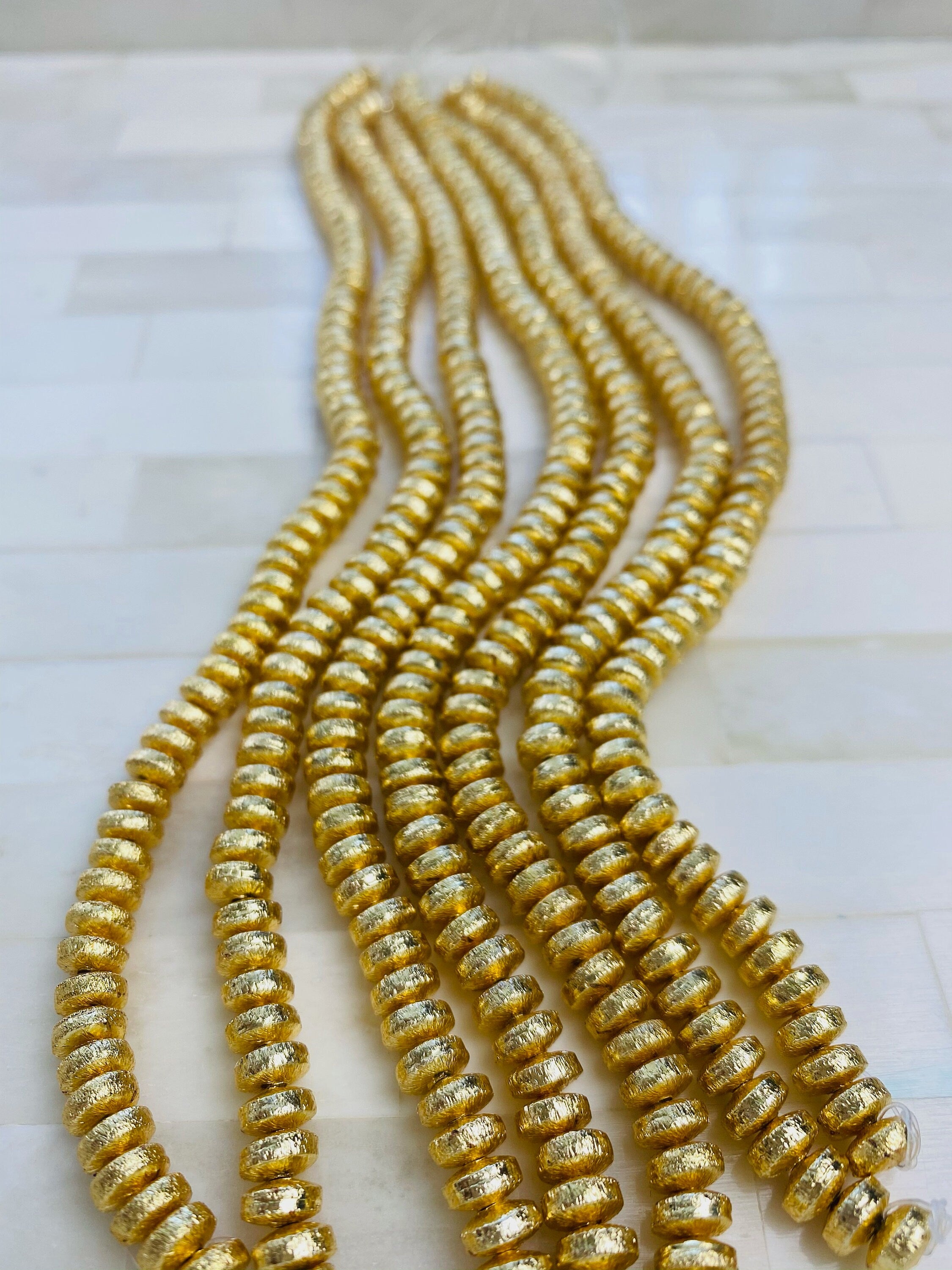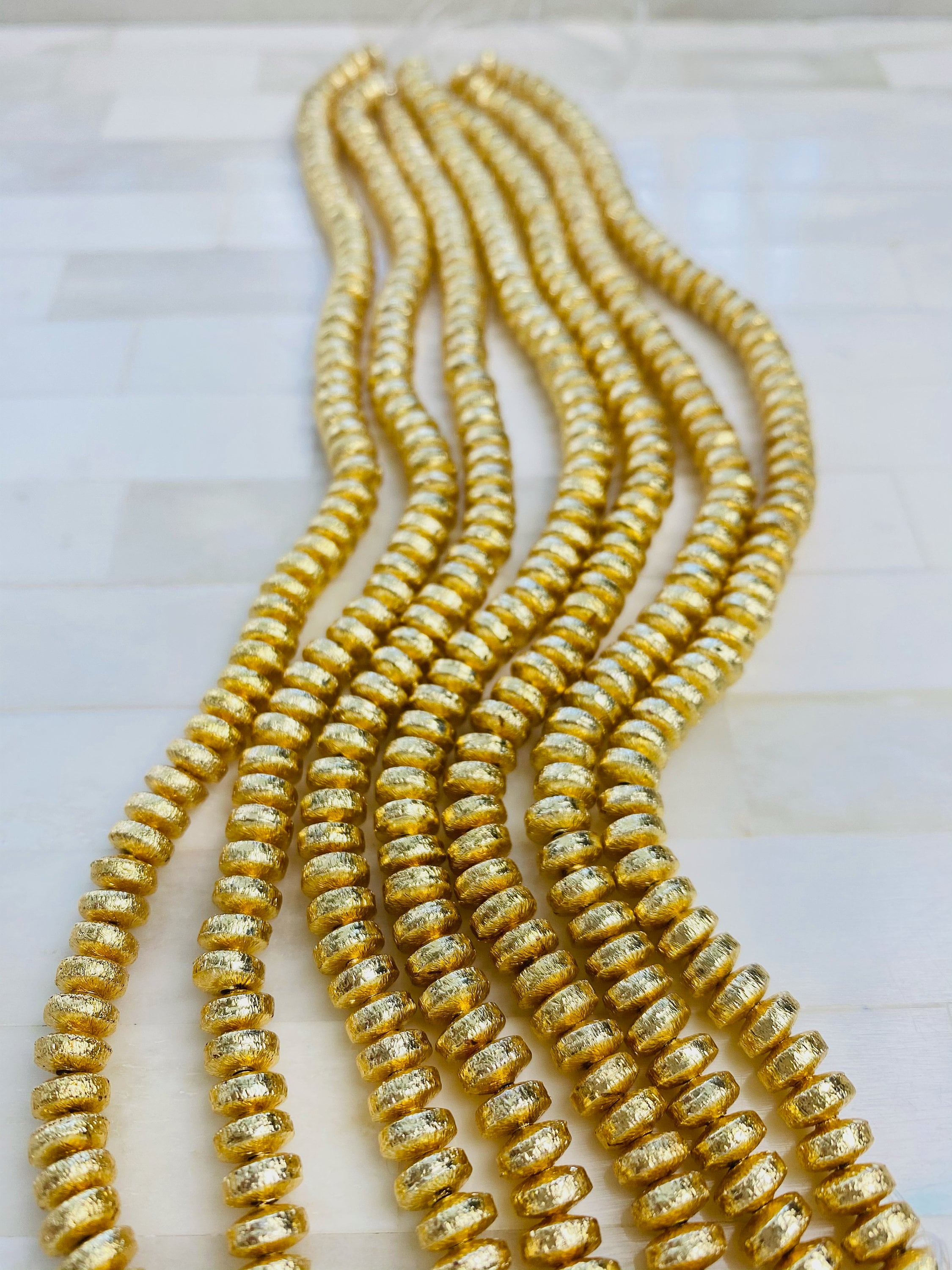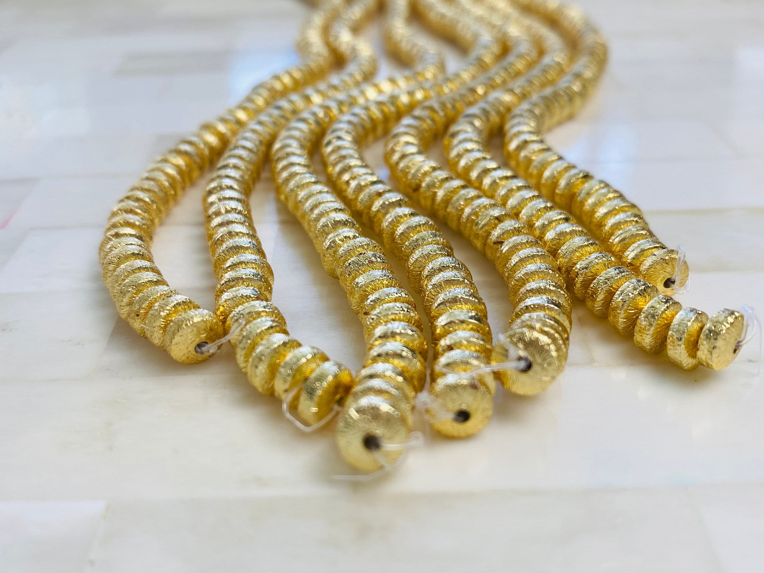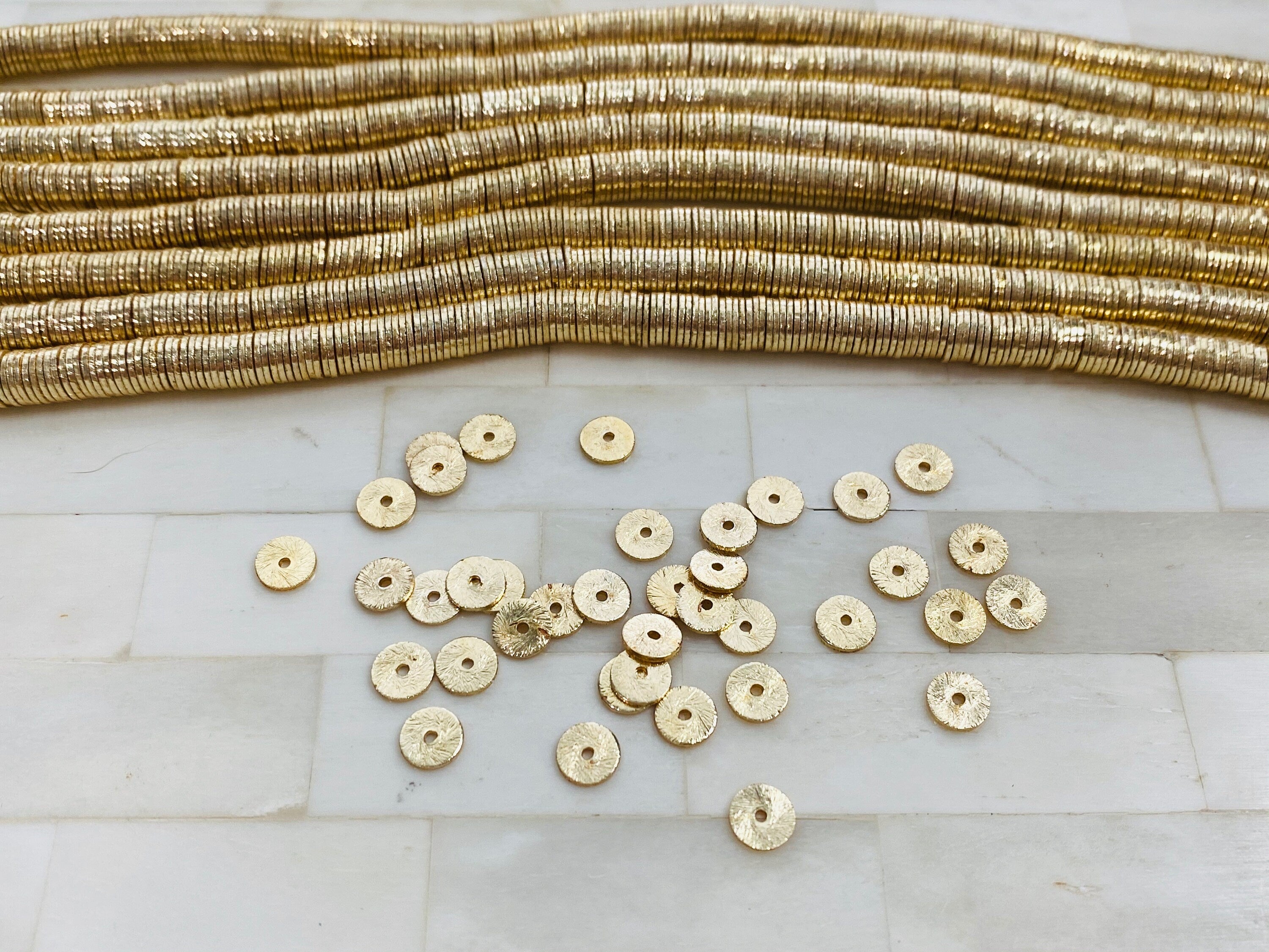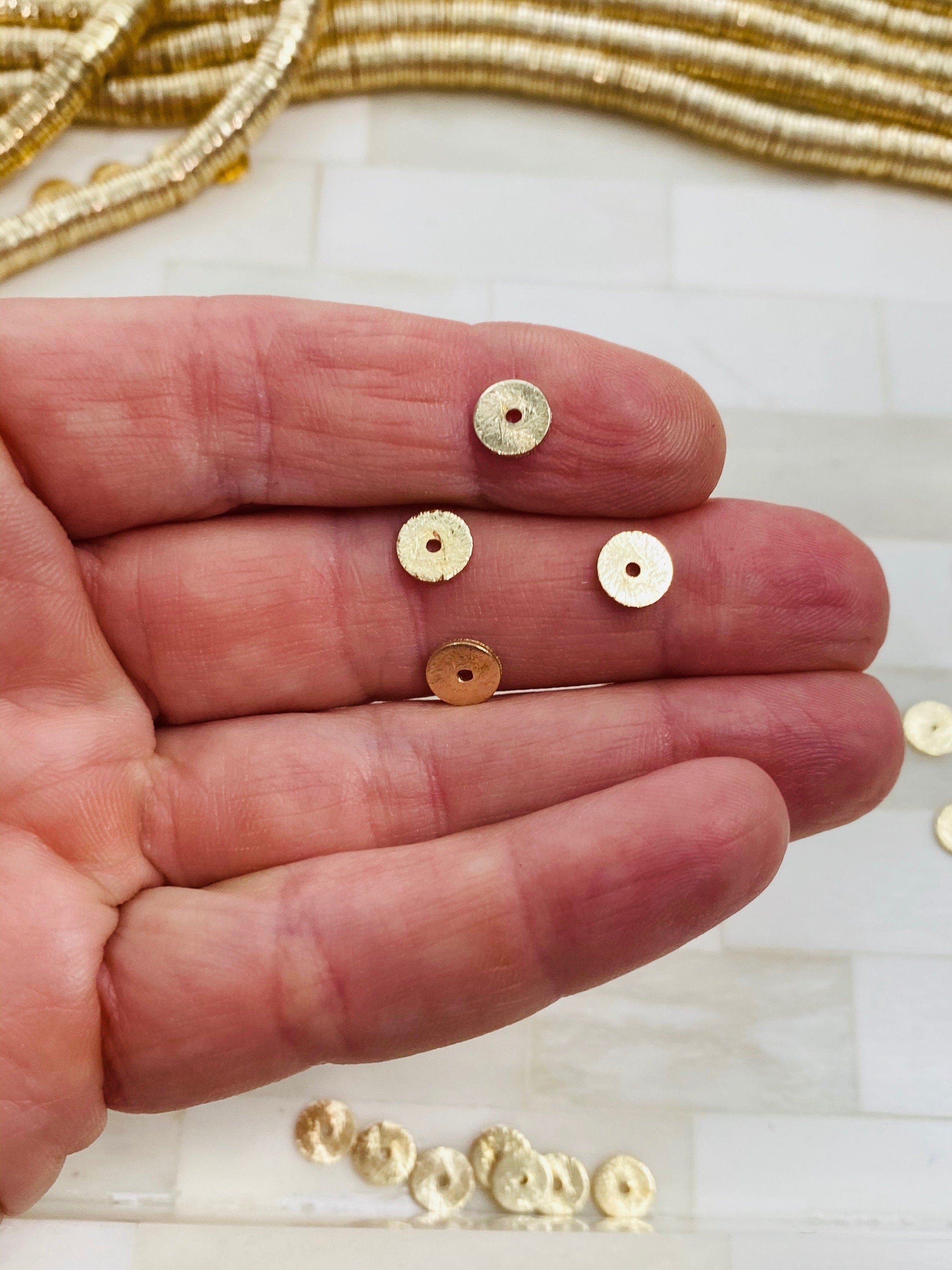 5mm Brushed Gold Heishi Bead - 14K Gold Disc Spacer Accent Bead