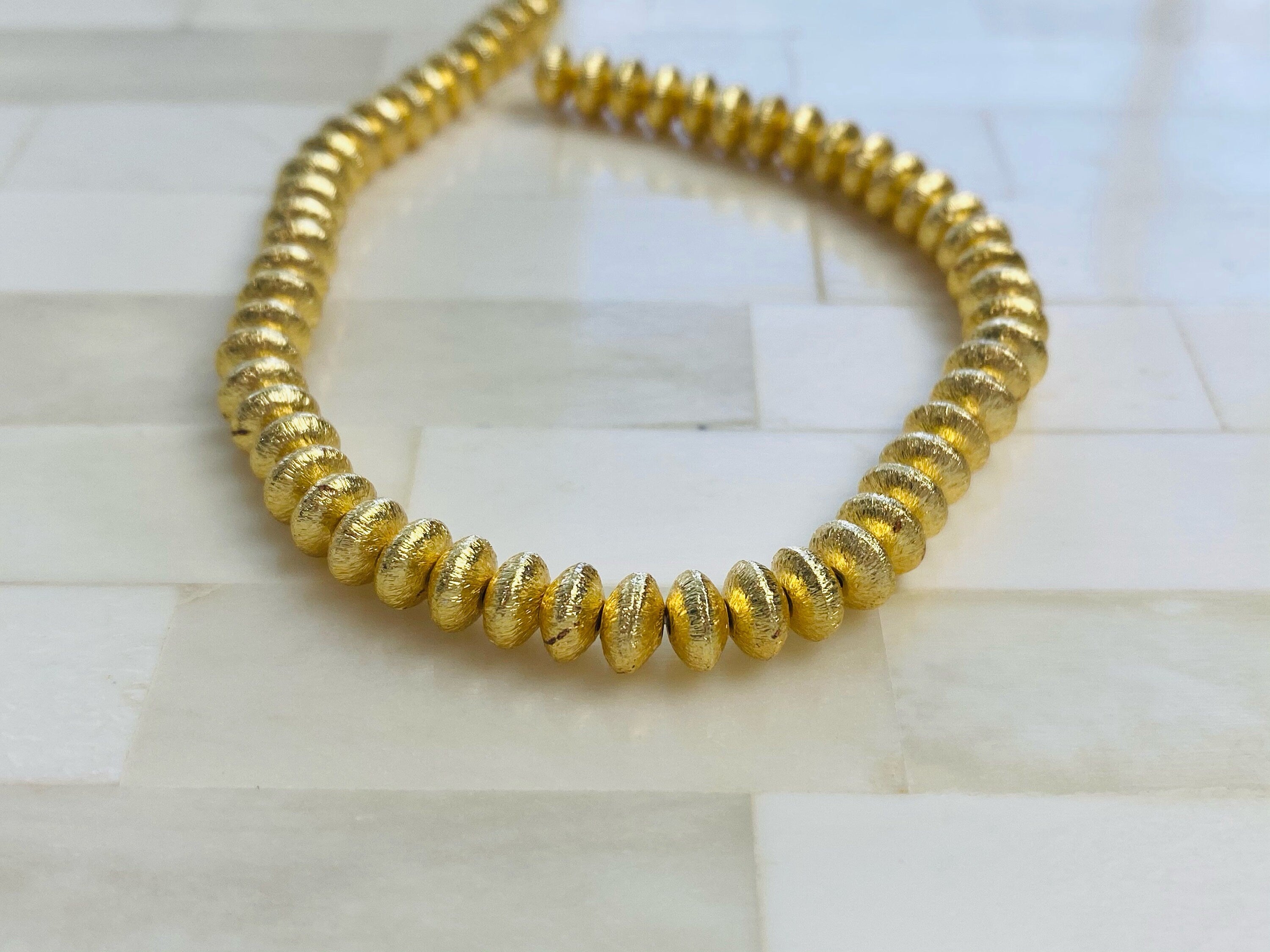 14k Brushed Gold 8mm Rondelle Heishi Bead - 8mm Gold Disc Spacer Accent Bead