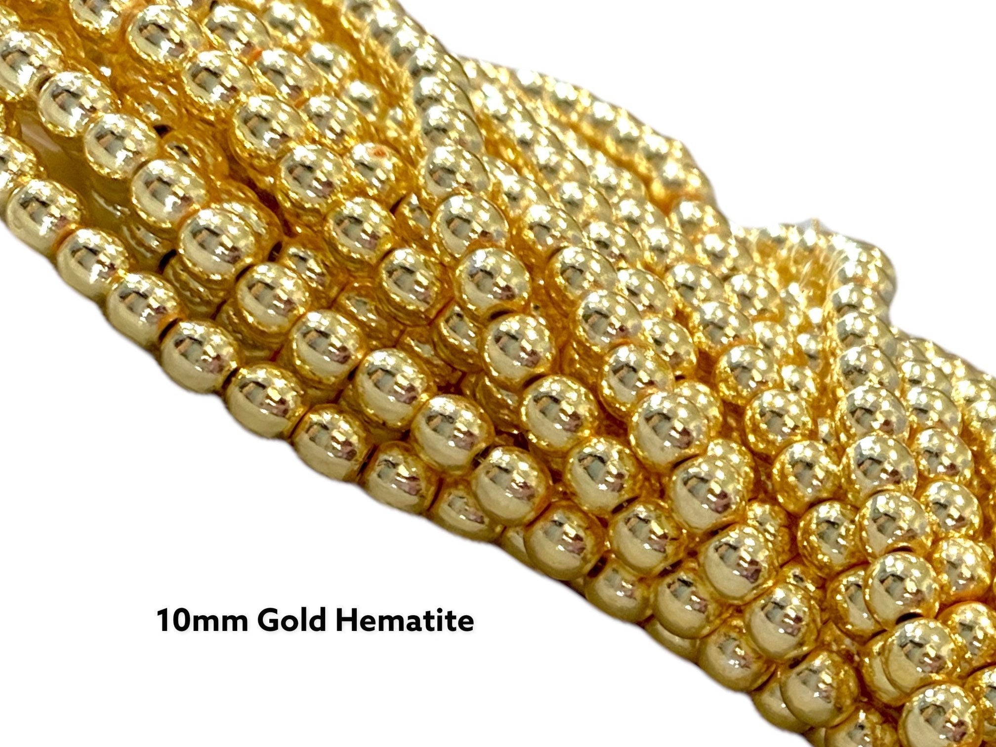 10mm Round- 14K Gold Coated Ball Hematite Smooth Round Polished -15.5" Strand Gold Ball Beads Quality gold plating Hematite