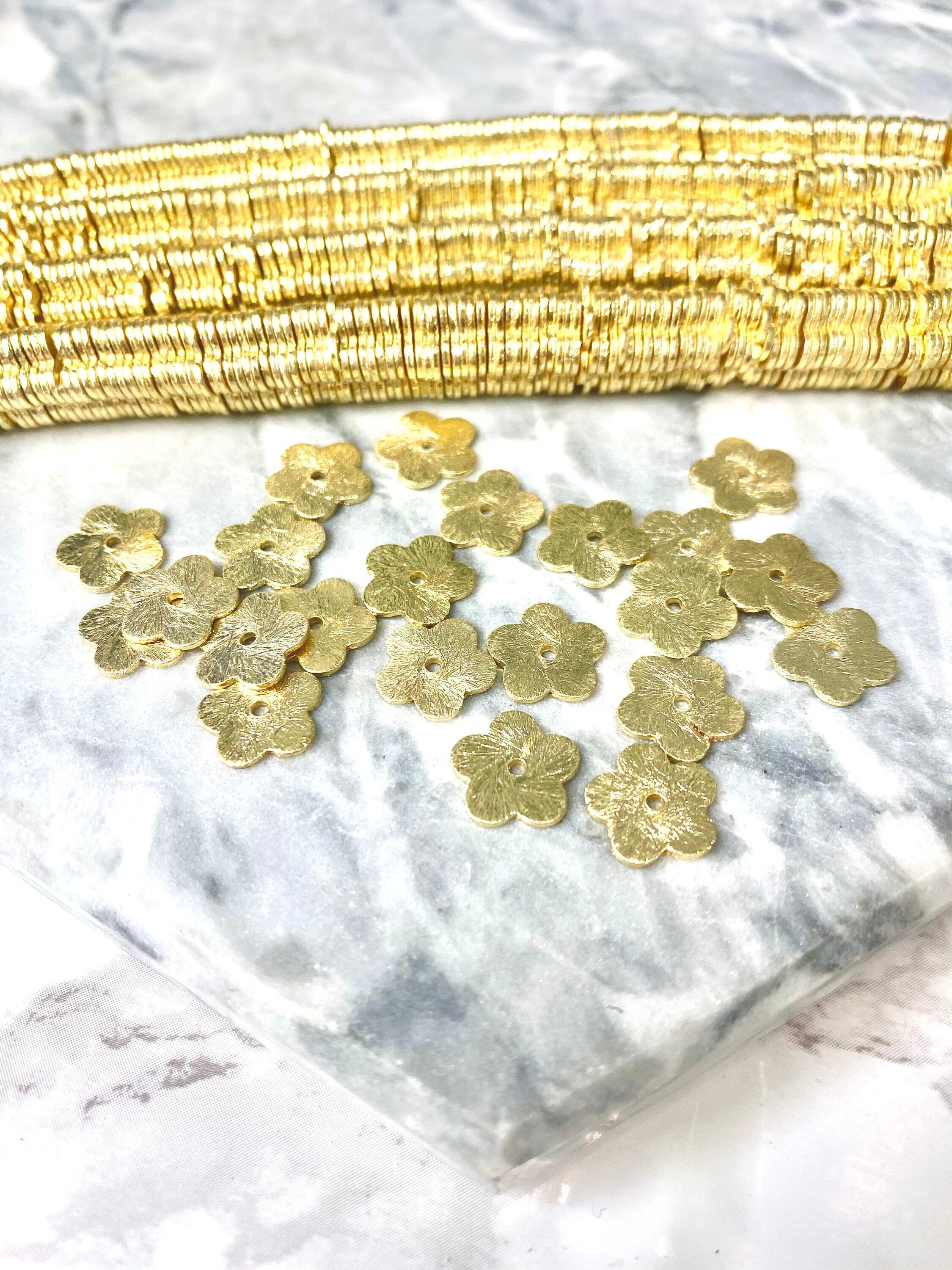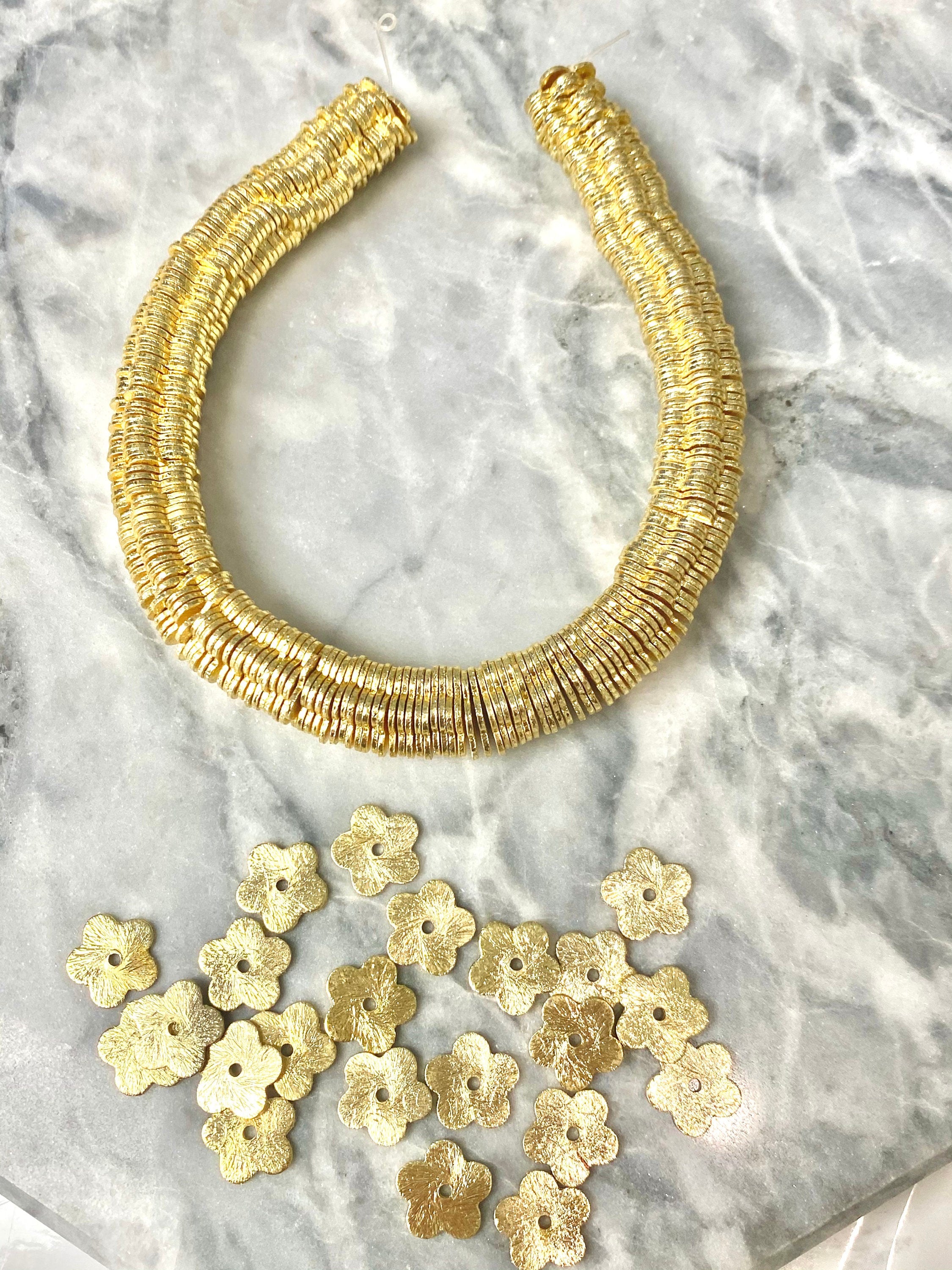 10mm- Flower Brushed 14k Gold Heishi Bead - 10 mm Gold Disc Spacer Accent Bead