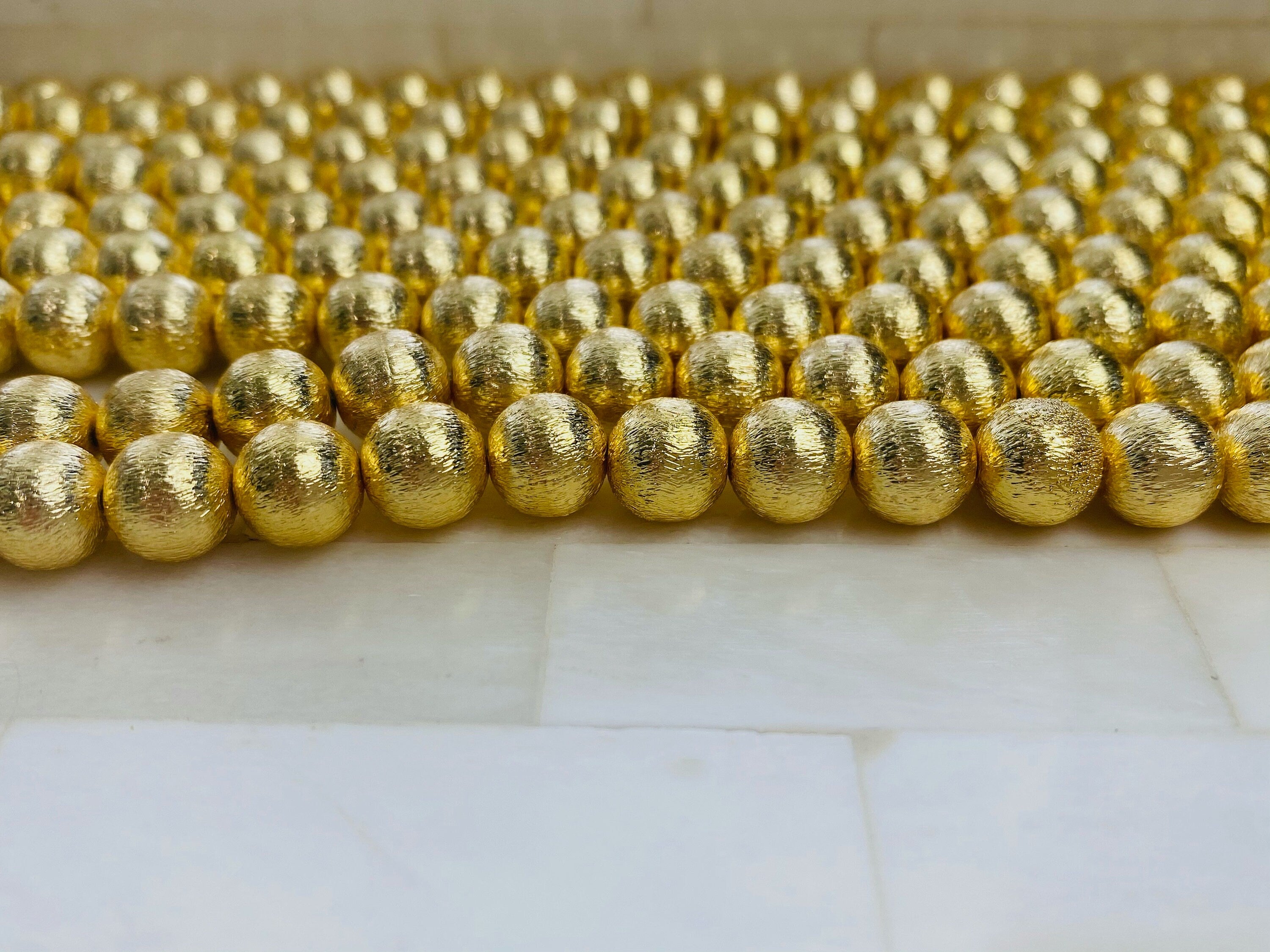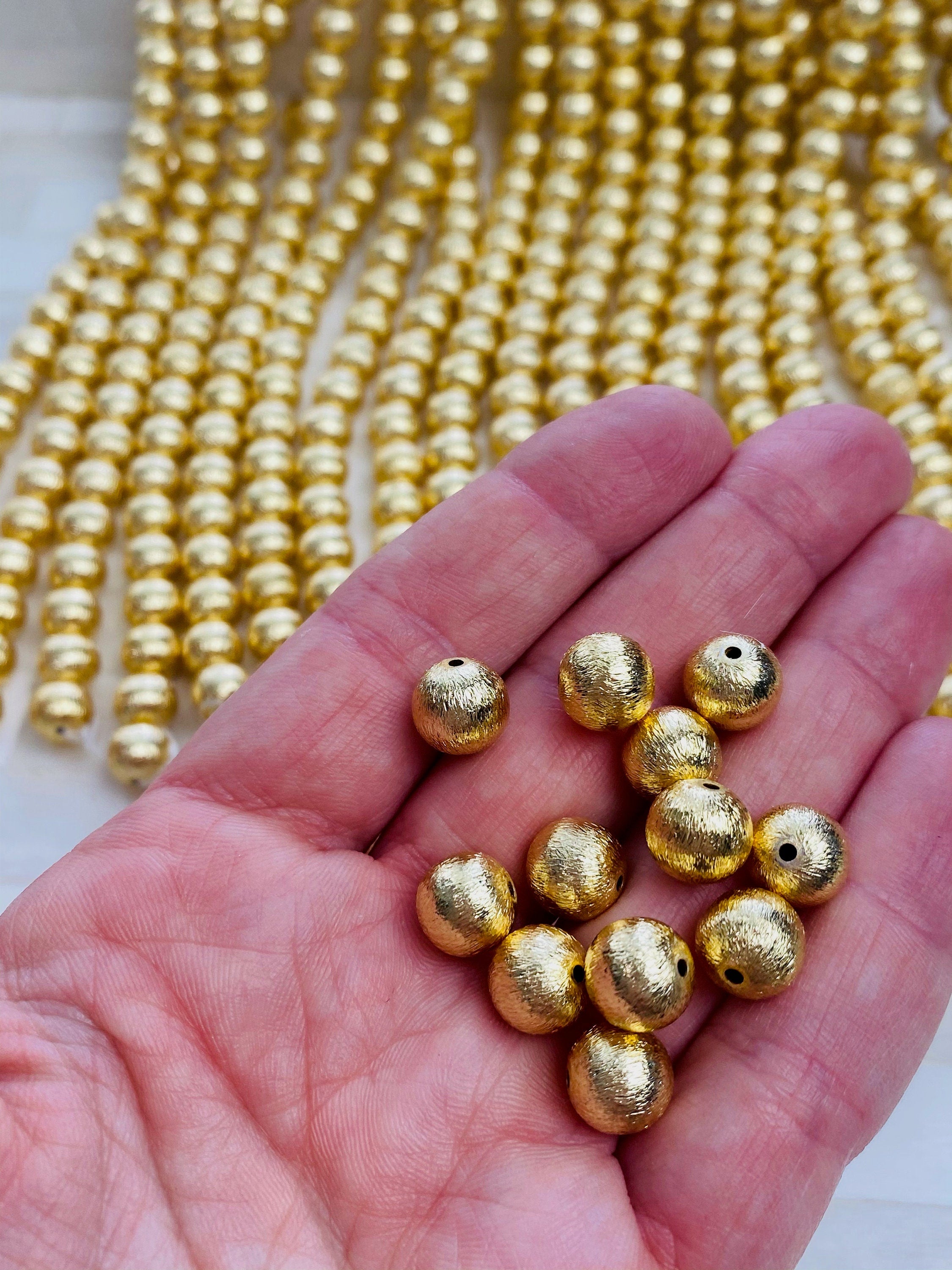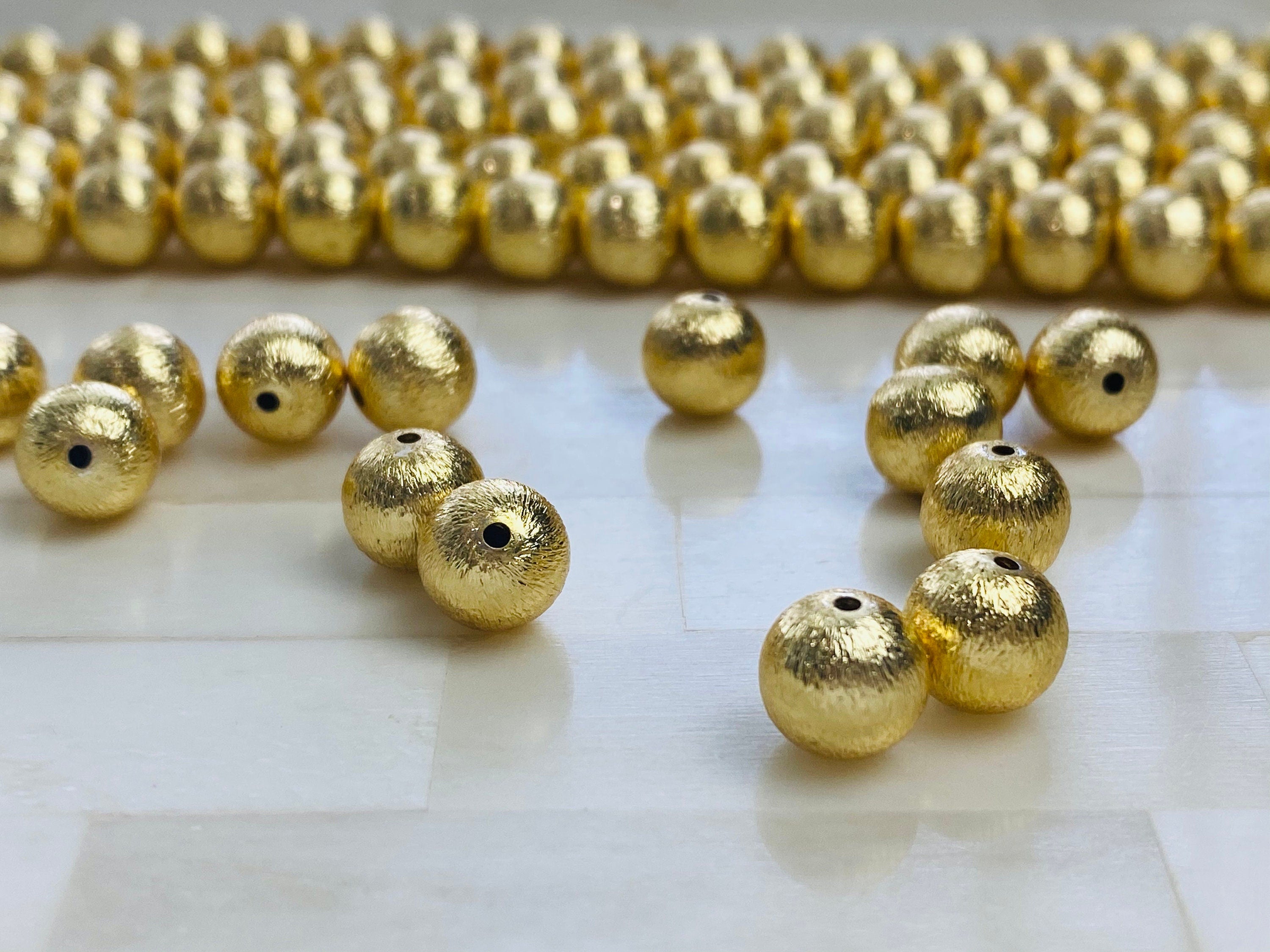 14k Plated - Brushed 8mm Gold Round Bead - 8mm Gold Ball Spacer Accent Bead- Indian Gold Beads BRUSHED GOLD