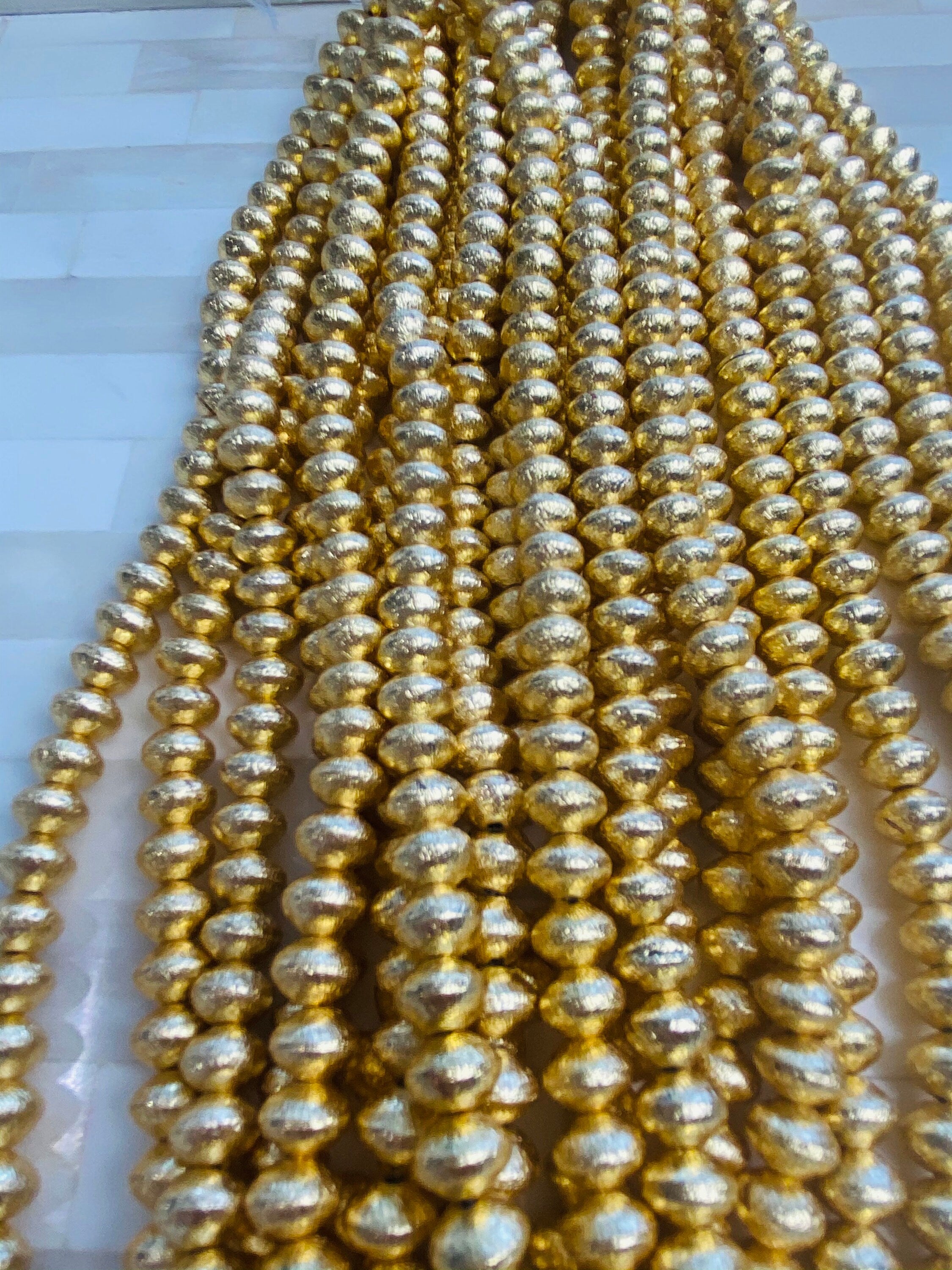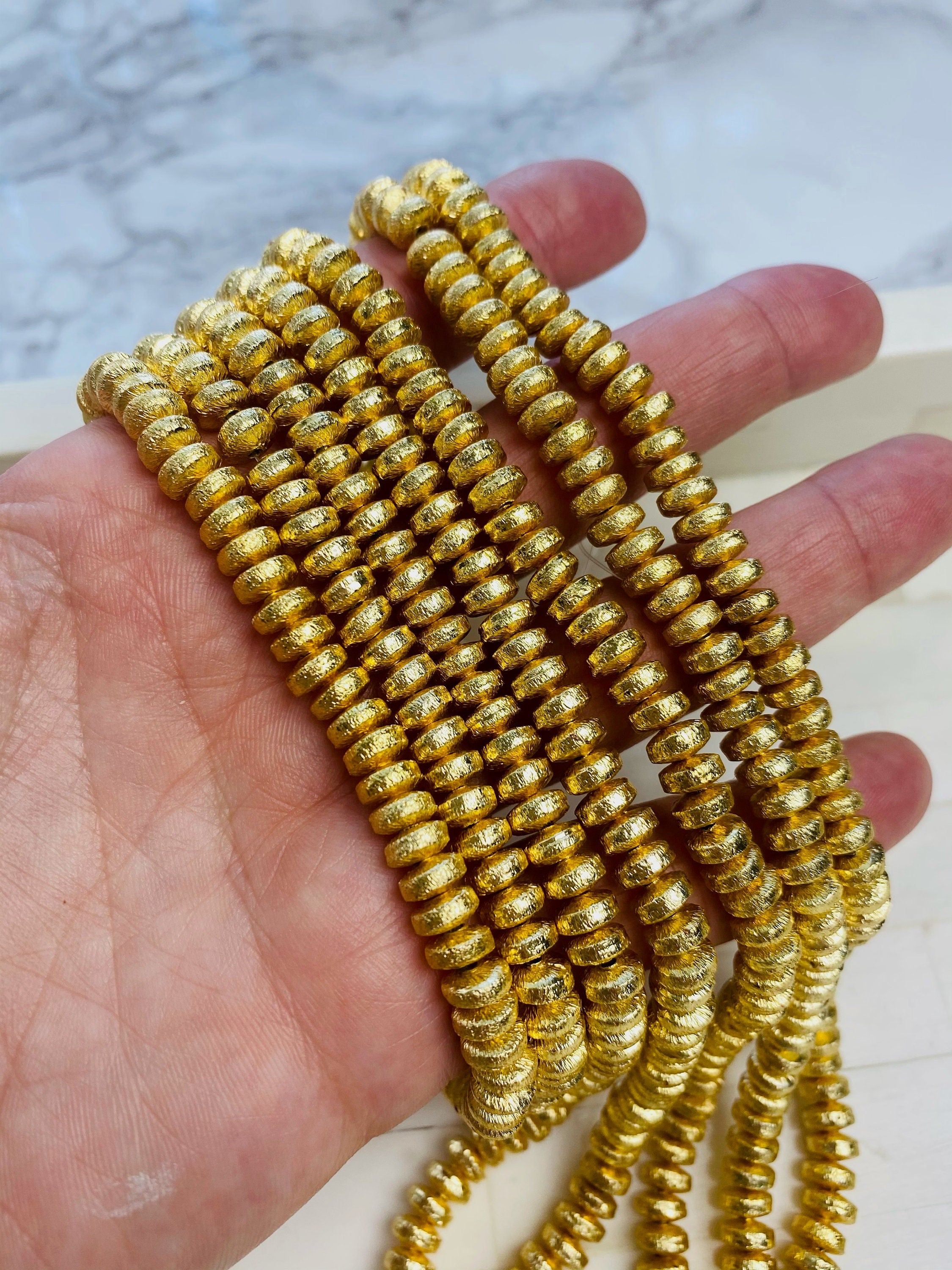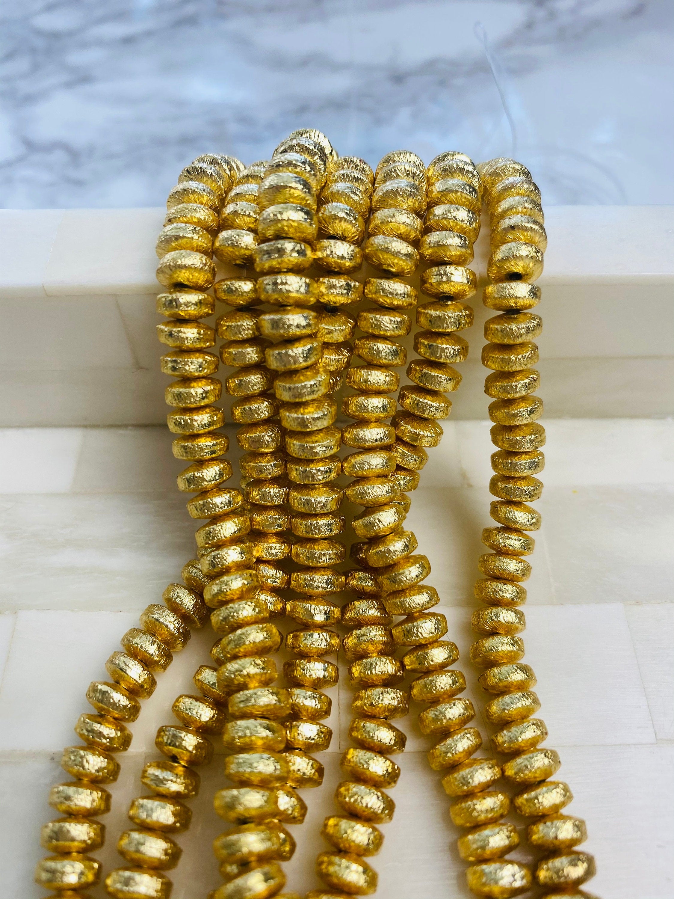 Crystal Rondelle- 14k Gold Plated Forte Spacer -Gemstone Birthstone Bracelet 8x3mm Accent Spacer Brush Gold Beads, Jewelry Making Florentine