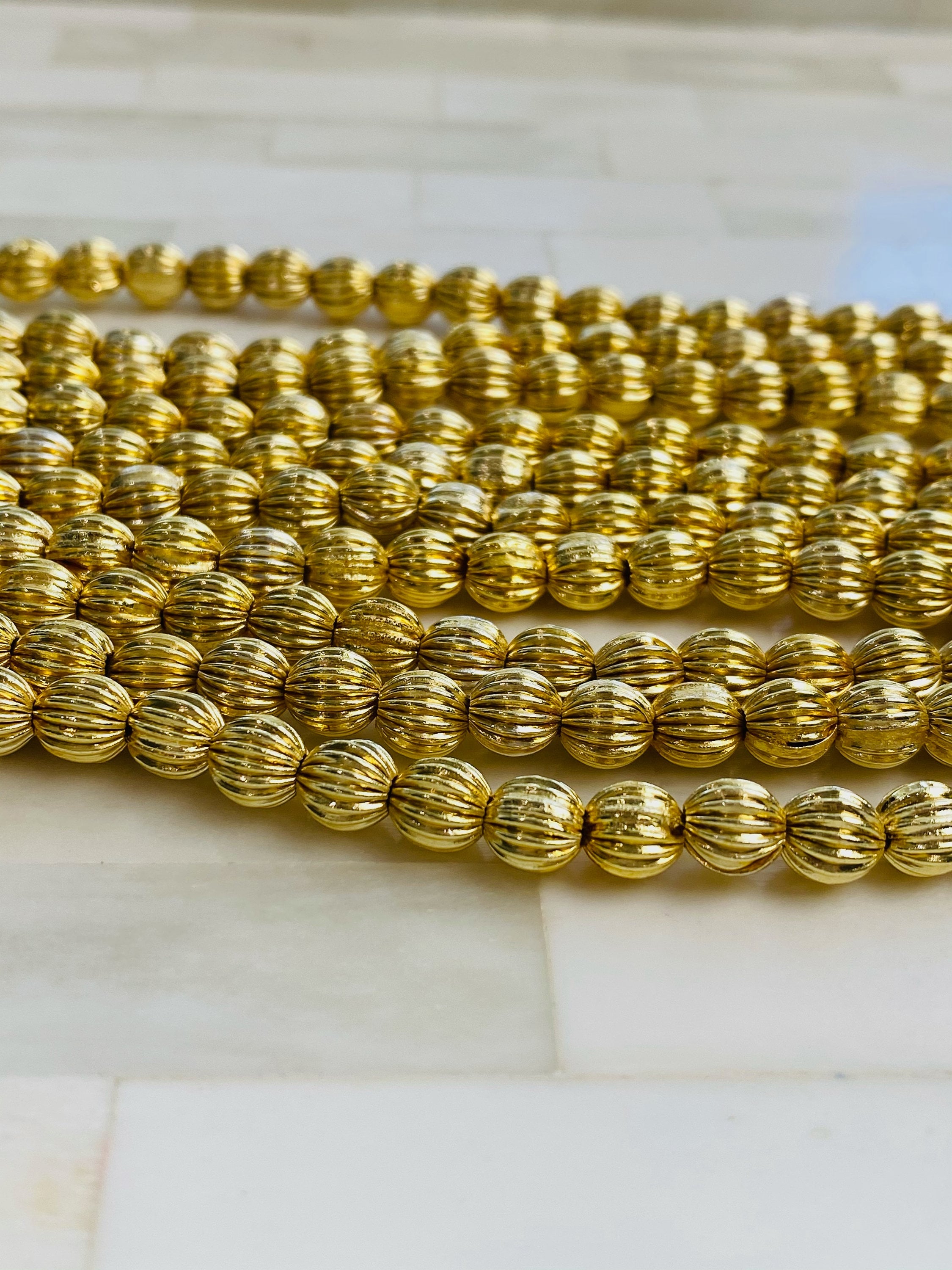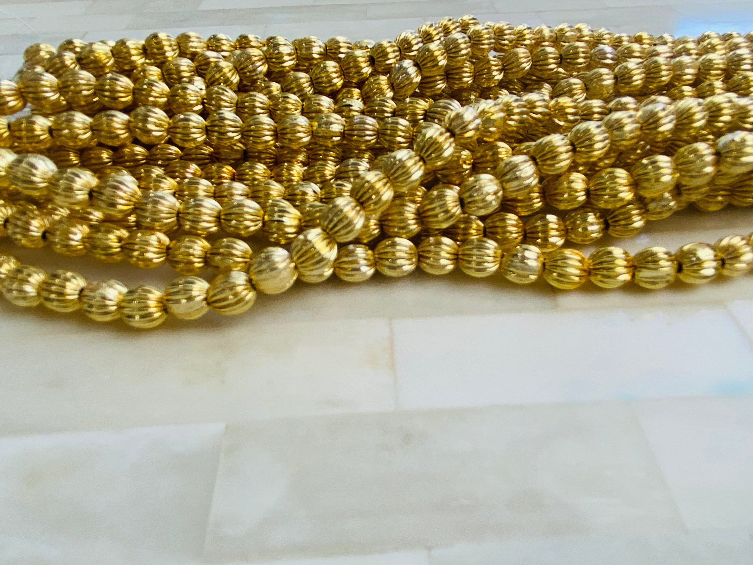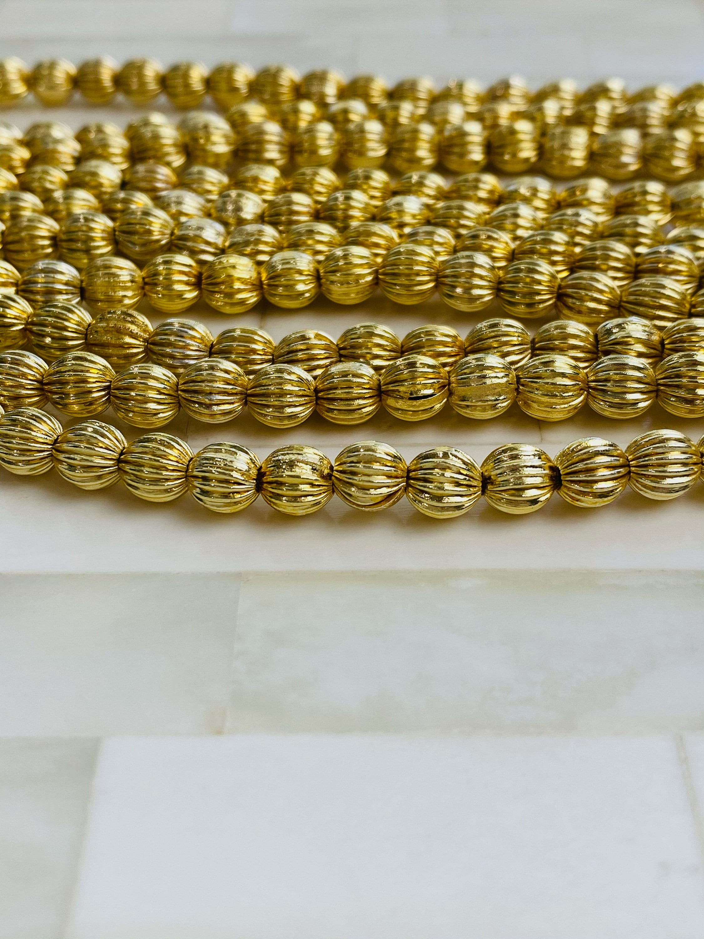 6mm Gold Watermelon Bead - 6mm Gold Spacer Accent Bead, Watermelon, 14kt gold plated over brass