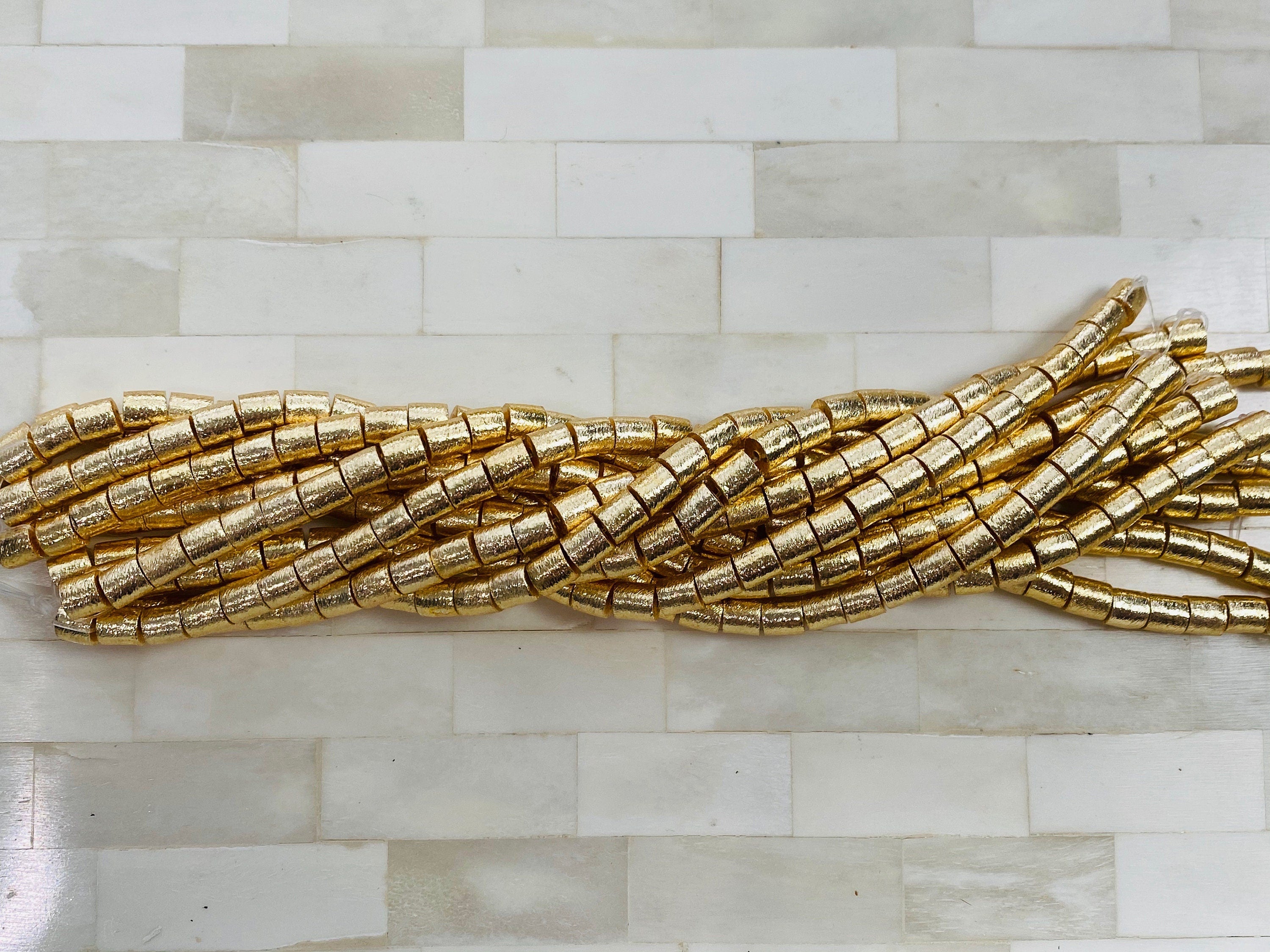 14k Brushed Gold Tube drum Bead - 6mm Gold Barrel Spacer Accent Bead, cylinder drum