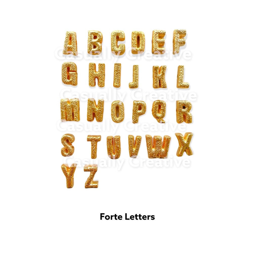 14k Gold Forte letter Beads - Large Hole- Gold Plated Alphabet cut out Forte Accent Beads- Pairs w Forte Gemstone Beads-9x15 Tie Cord Lurex