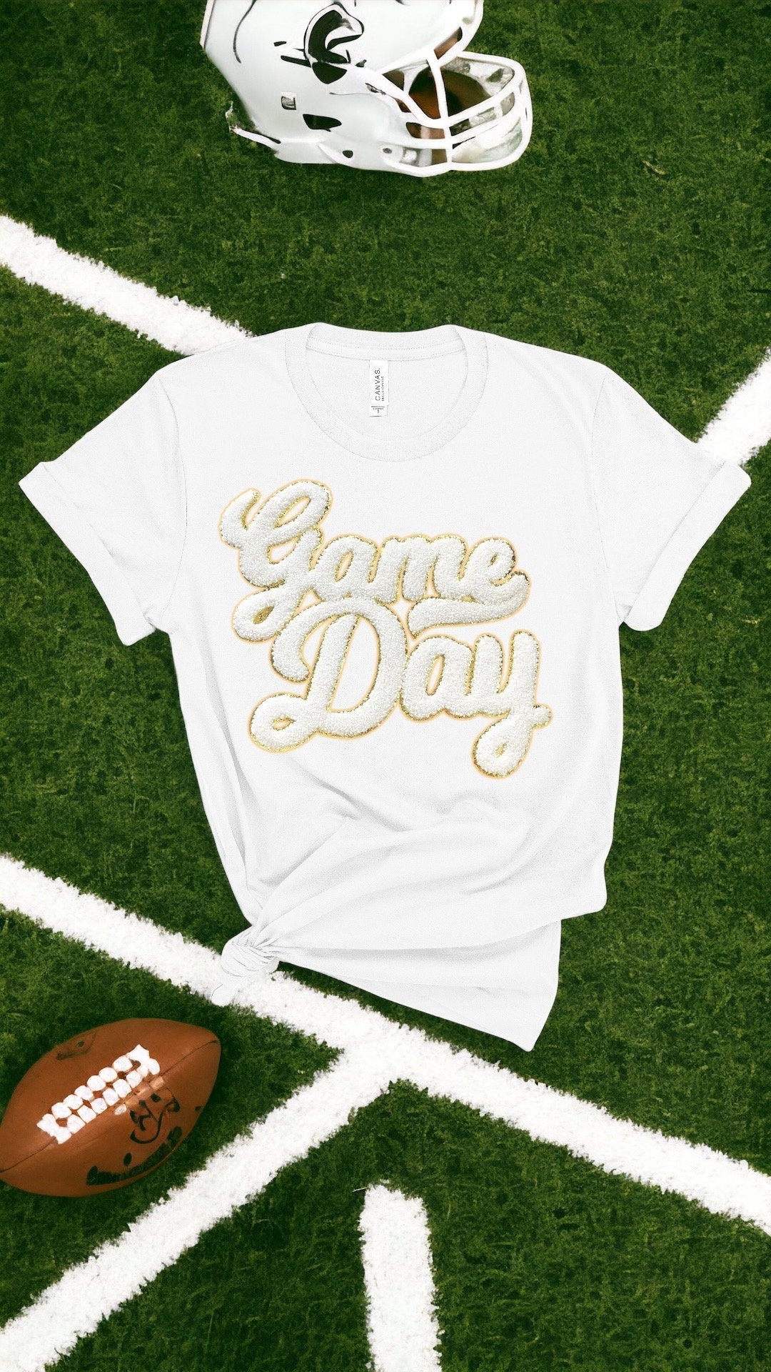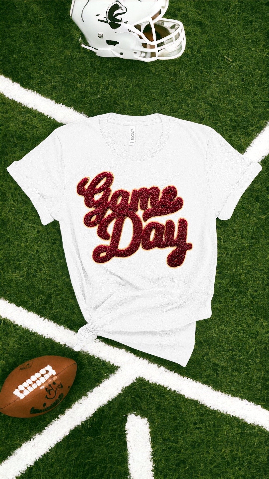Game Day Patch - Iron On Glitter Chenille Patch, chenille letters, foitball , basketball, baseball, softball, sweatshirt, sweatshirt 9.84”
