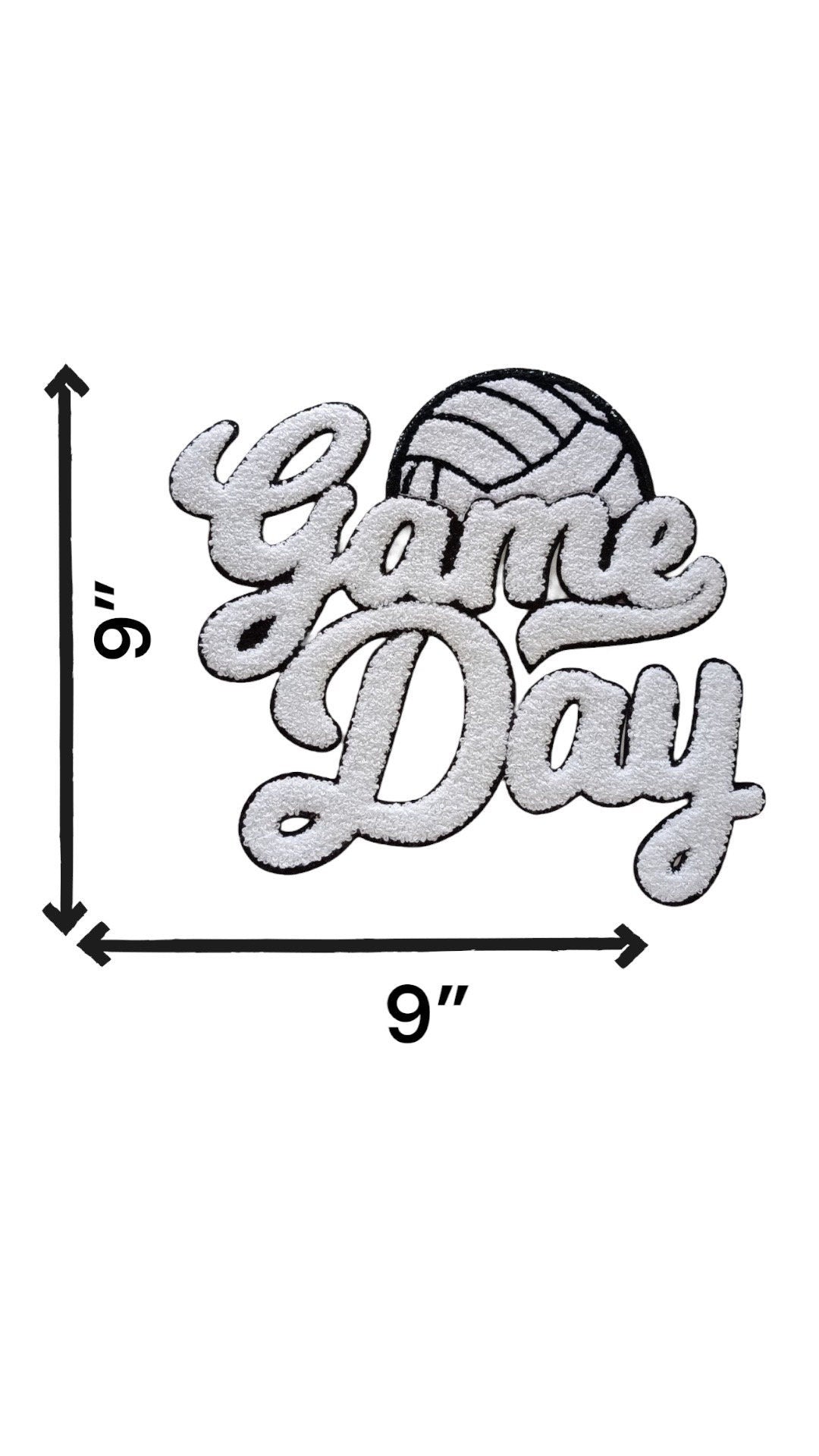 Game Day - Volleyball Patch - Iron On -White Chenille Patch, chenille letters, olletball team mom sweatshirt, game day sweatshirt 9”