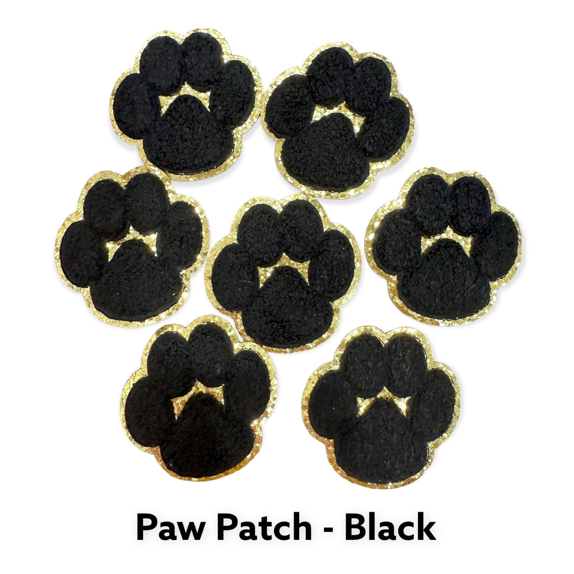 Paw Print- Iron On Embroidery Patch- Chenille DIY Patch with Gold Glitter Trim- Varsity Letter- Perfect for Nylon Pouches & Clothes