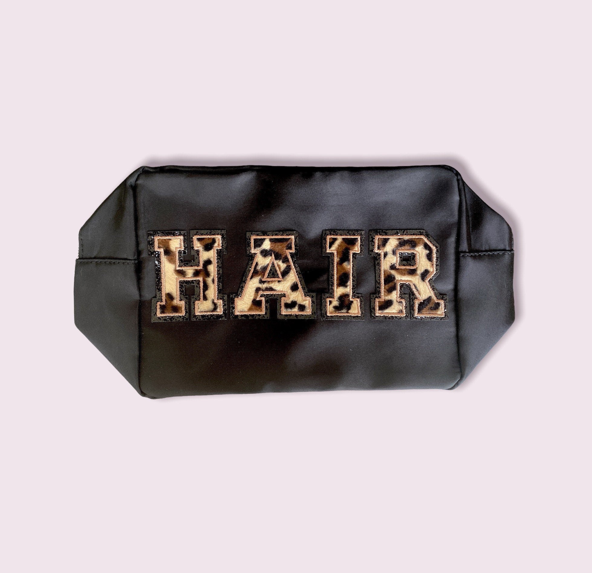 Cosmetic Bag- Leopard Bag - Zippered Nylon Christmas Gift ,Mom Nylon Bag, Cosmetic Bag -Glitter Varsity Letter Patches Makeup Snacks Pouch