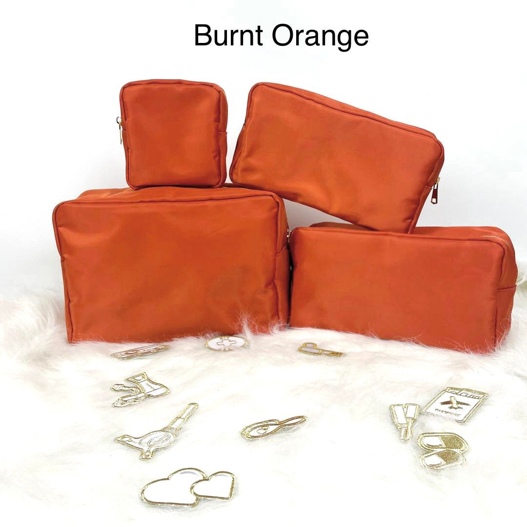 Burnt Orange- Fall Nylon Cosmetic Bag -DIY Customizable With Glitter Varsity Letter Initial Patches Makeup Bag- Nylon Pouch -Bridesmaid gift