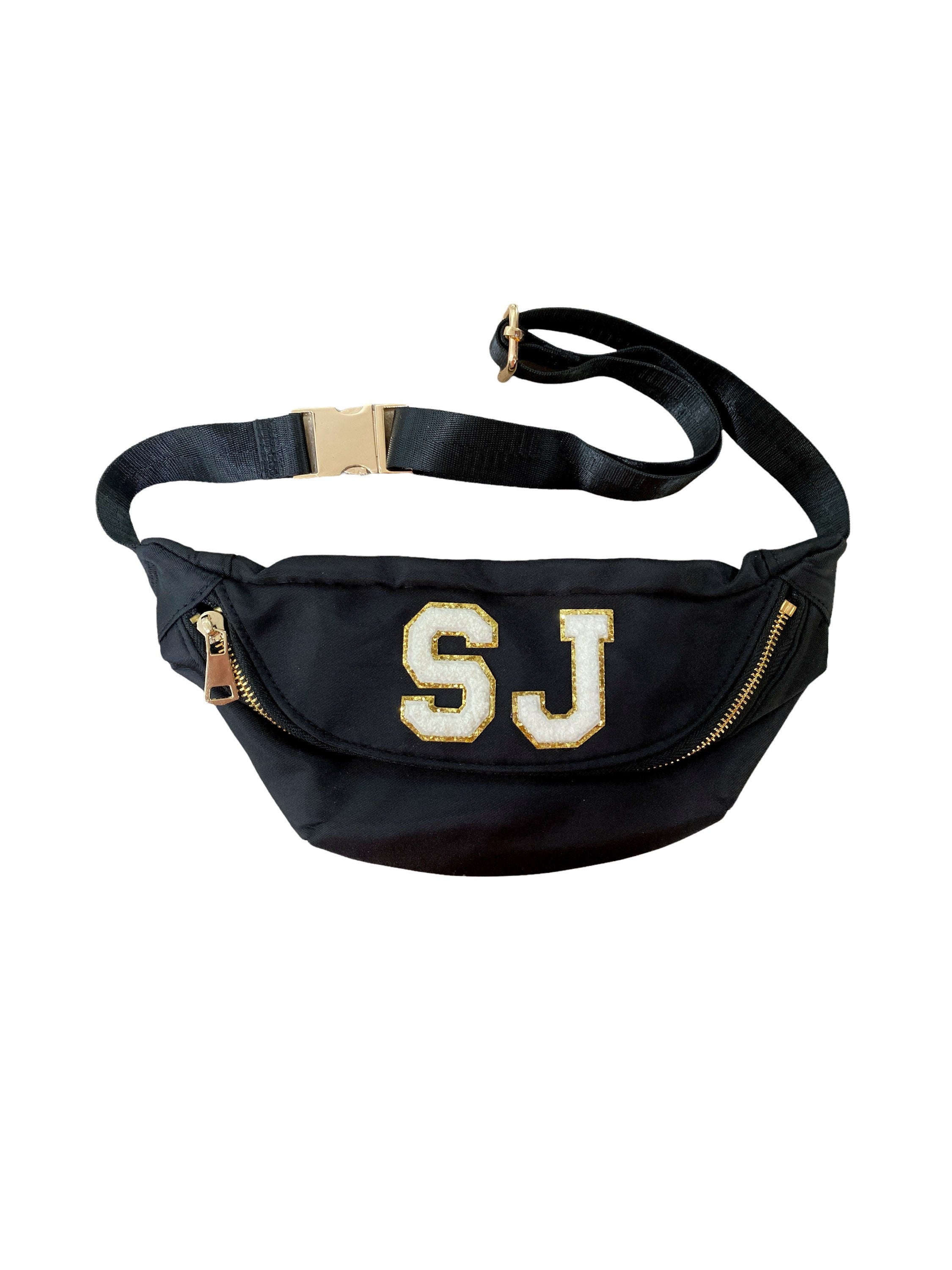 Custom Nylon Fanny Pack - Belt Bag Womens DIY With Glitter Varsity Letter Initial Patches -Bridesmaid gift Bachelorette