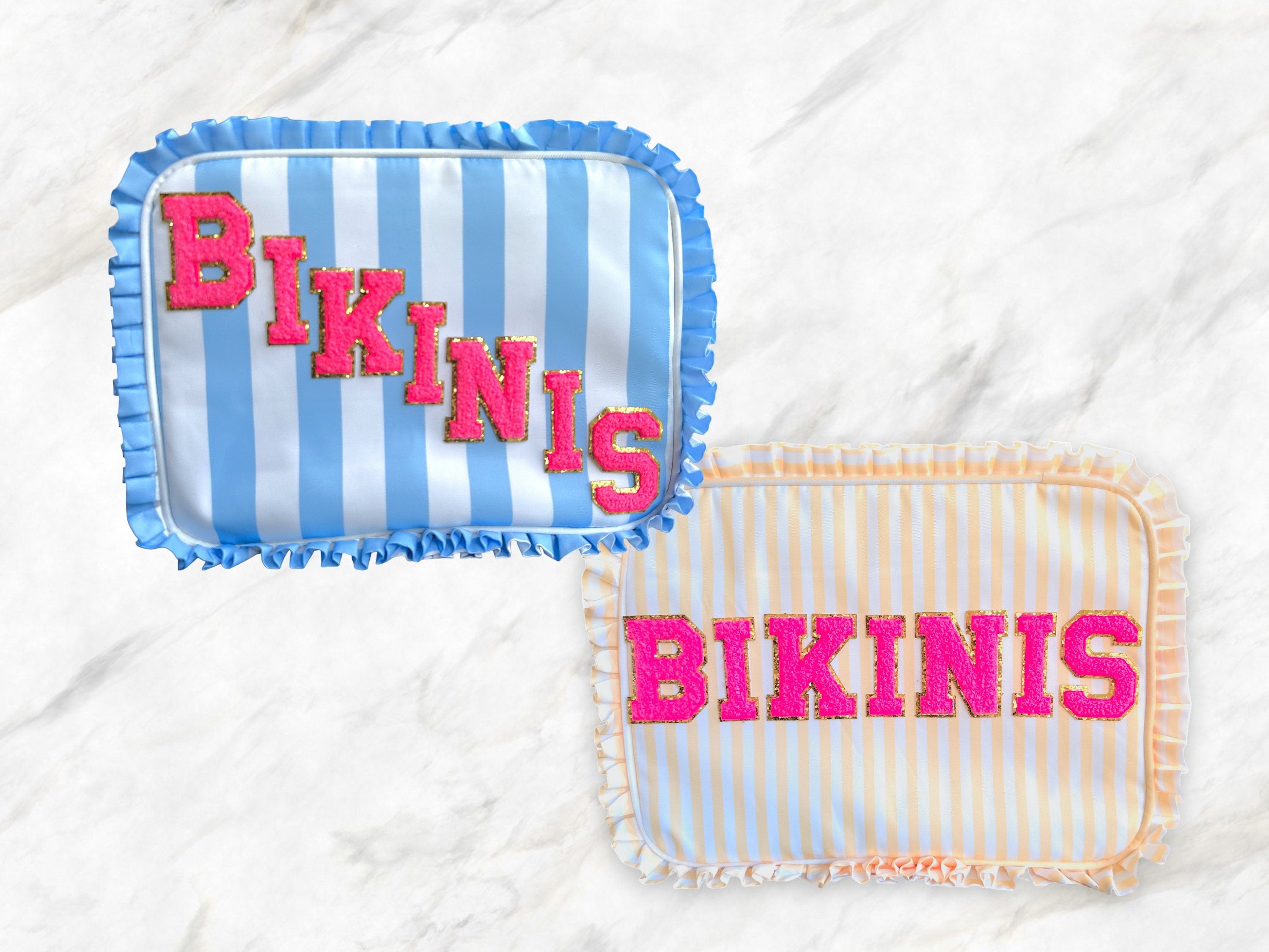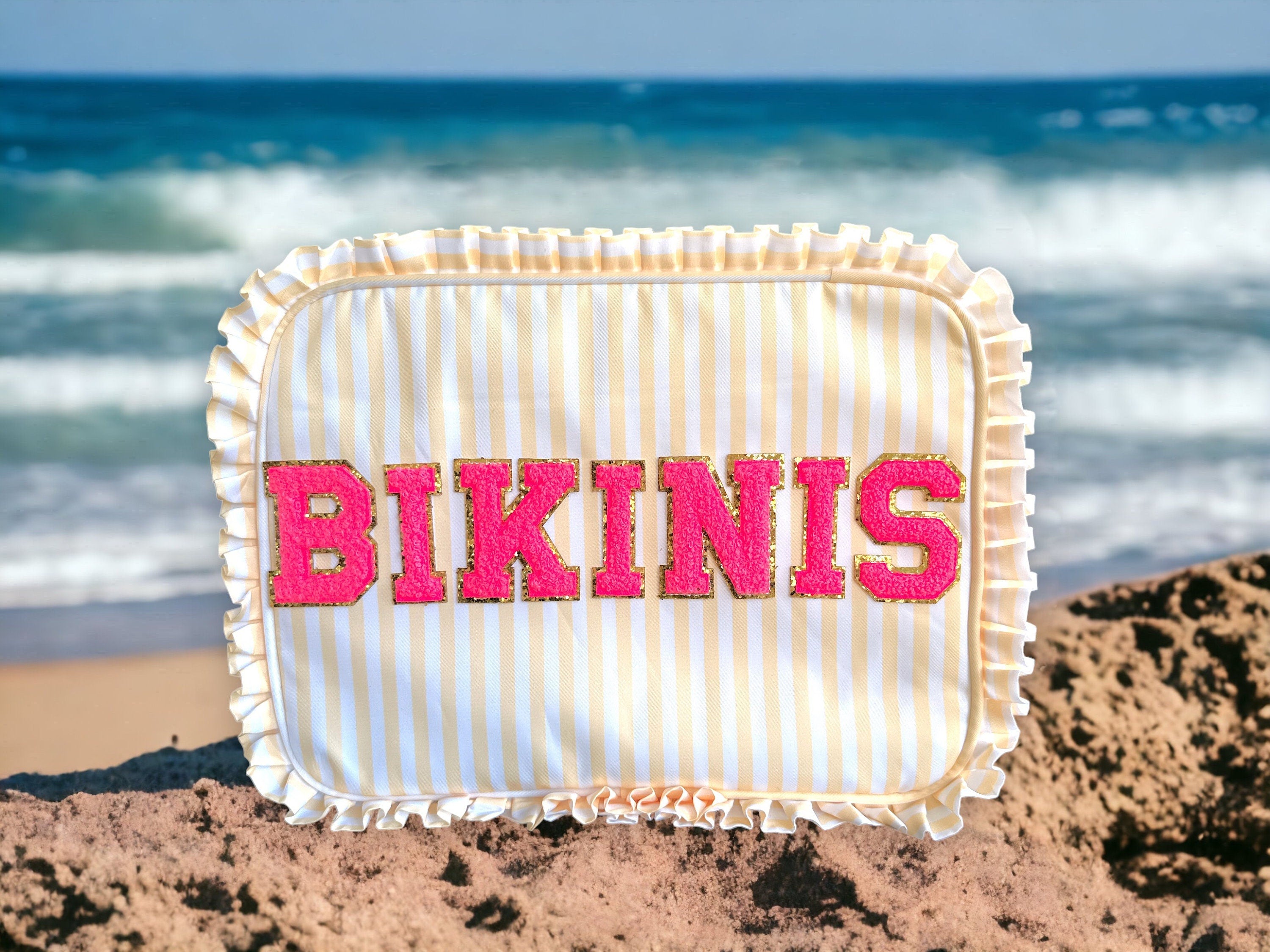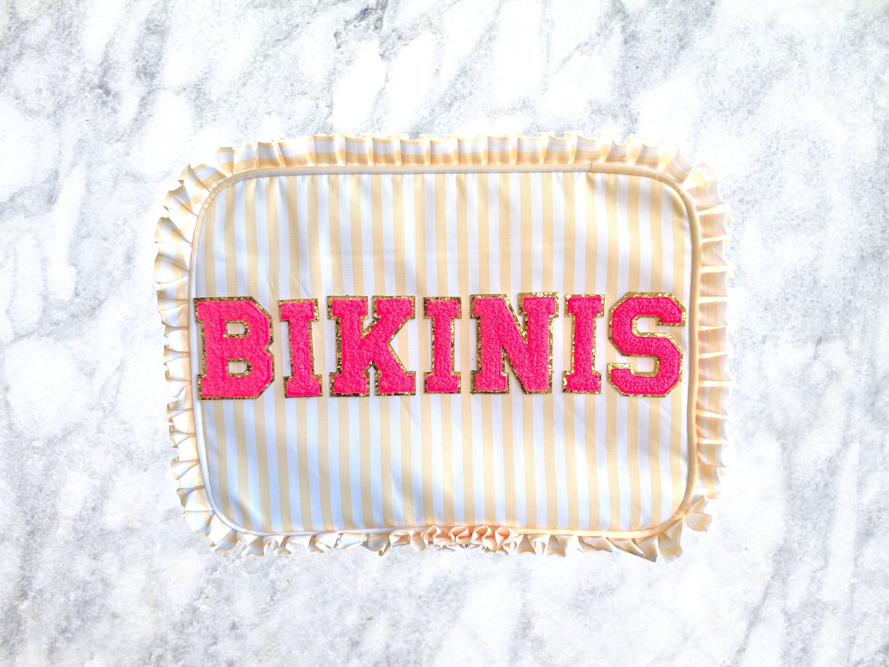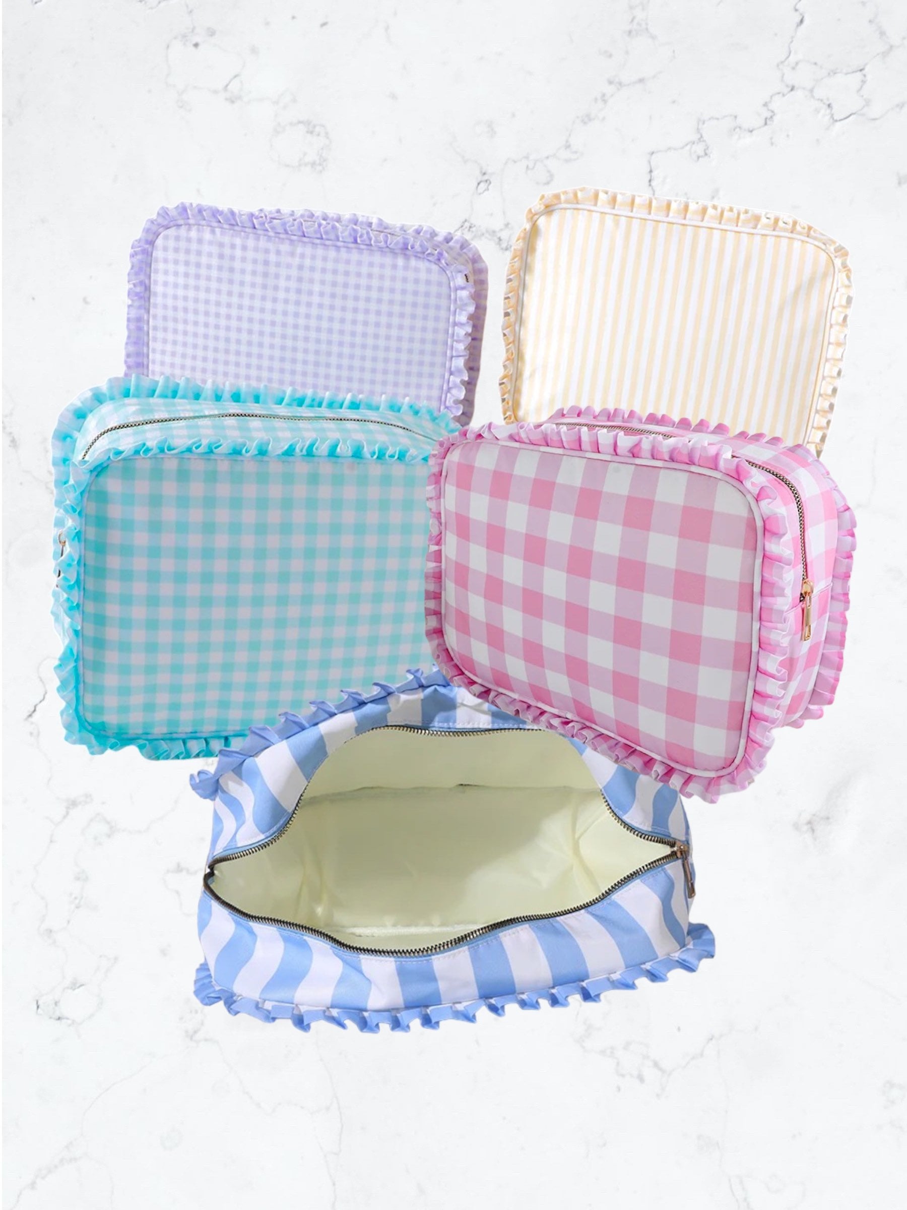 Custom - Spring Break - XL Ruffle Gingham Bag- Nylon Cosmetic Bag -DIY Customizable With Glitter Varsity Letter Initial Patches Nylon Pouch