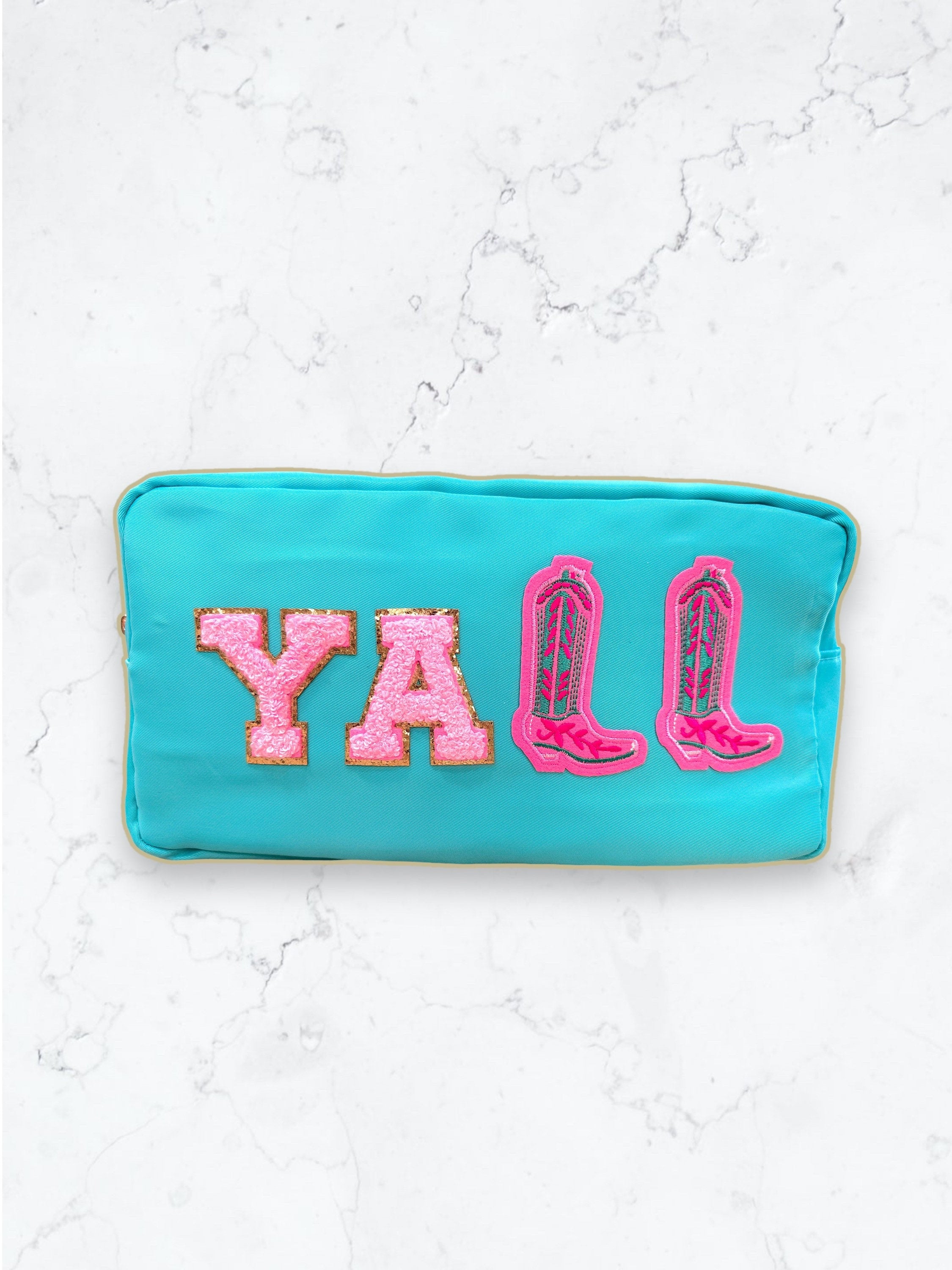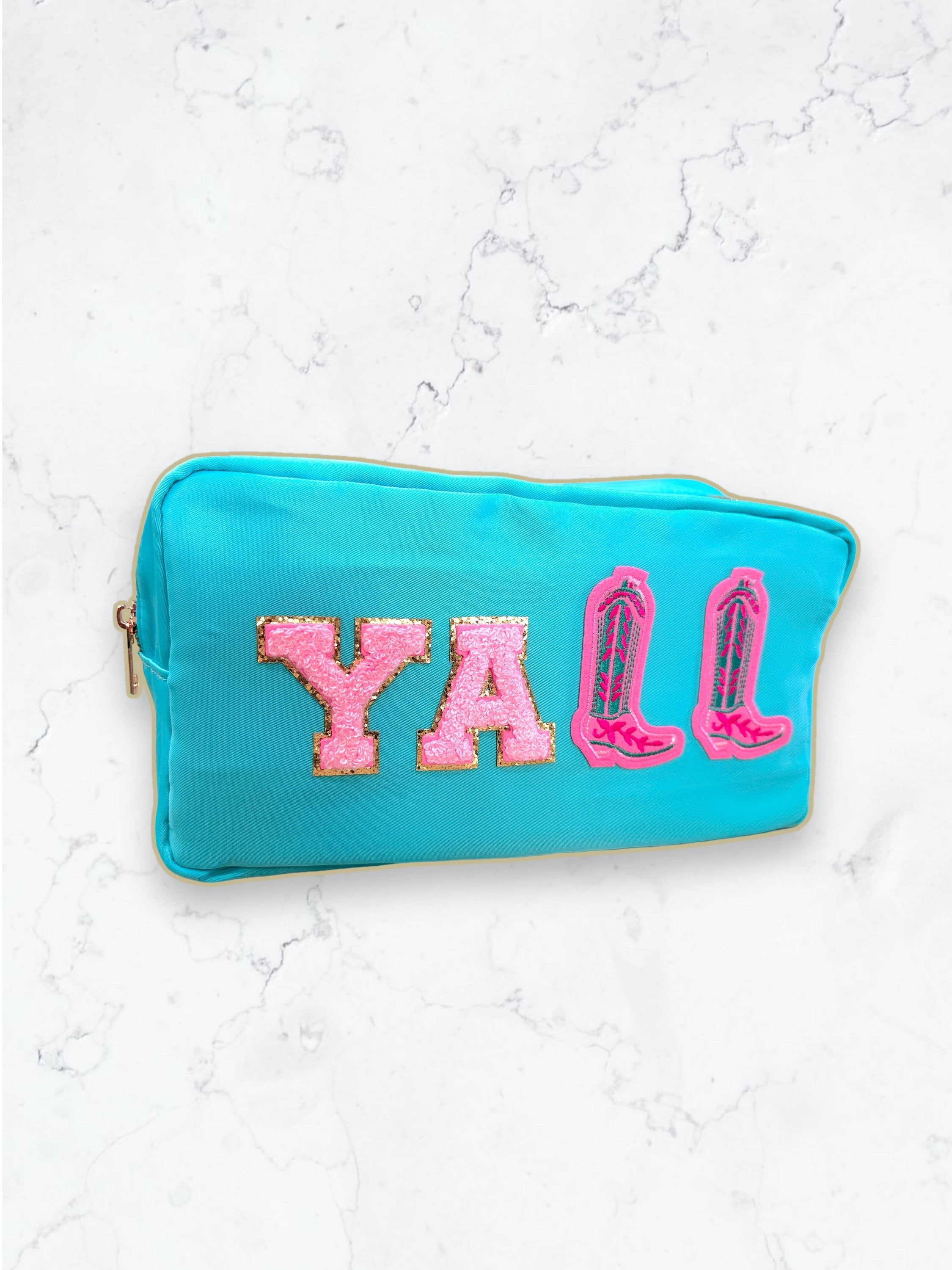 Y'all Nylon Pouch - Rodeo Pink Cowgirl Boot Patch - -Nashville Swiftie -Southwest Patch- Western Boot- Space Cowgirl- Southern - Swiftie