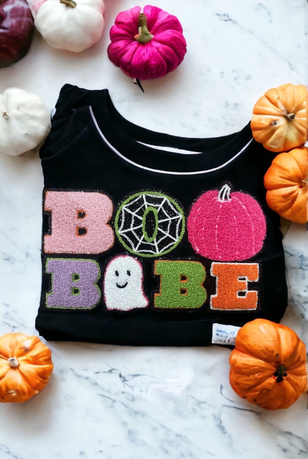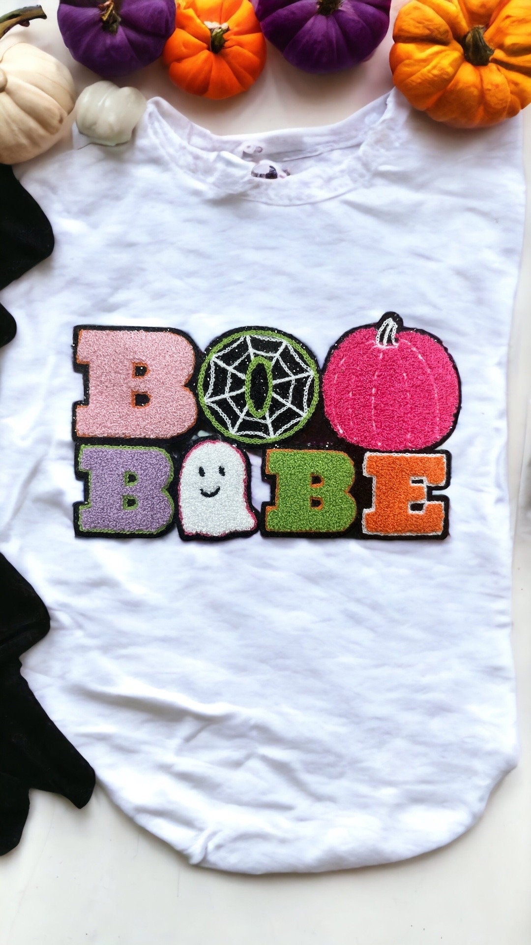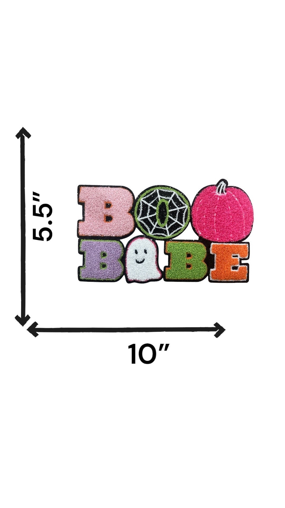 Boo Babe - Iron On Patch - Halloween Pumpkin & Ghost Chenille Patch Fall Patch- Pink Pumpkin, Cutest Pumpkin Patch, Gold Glitter 10”x5.5”