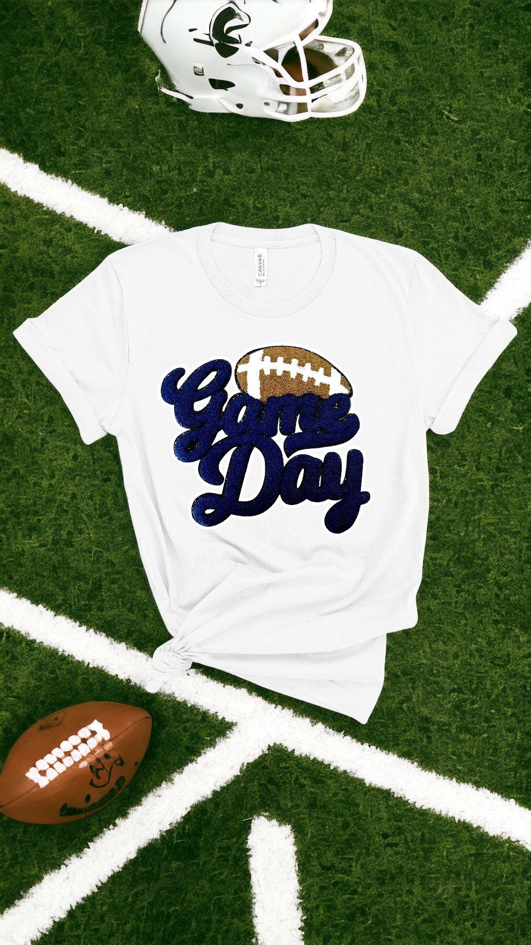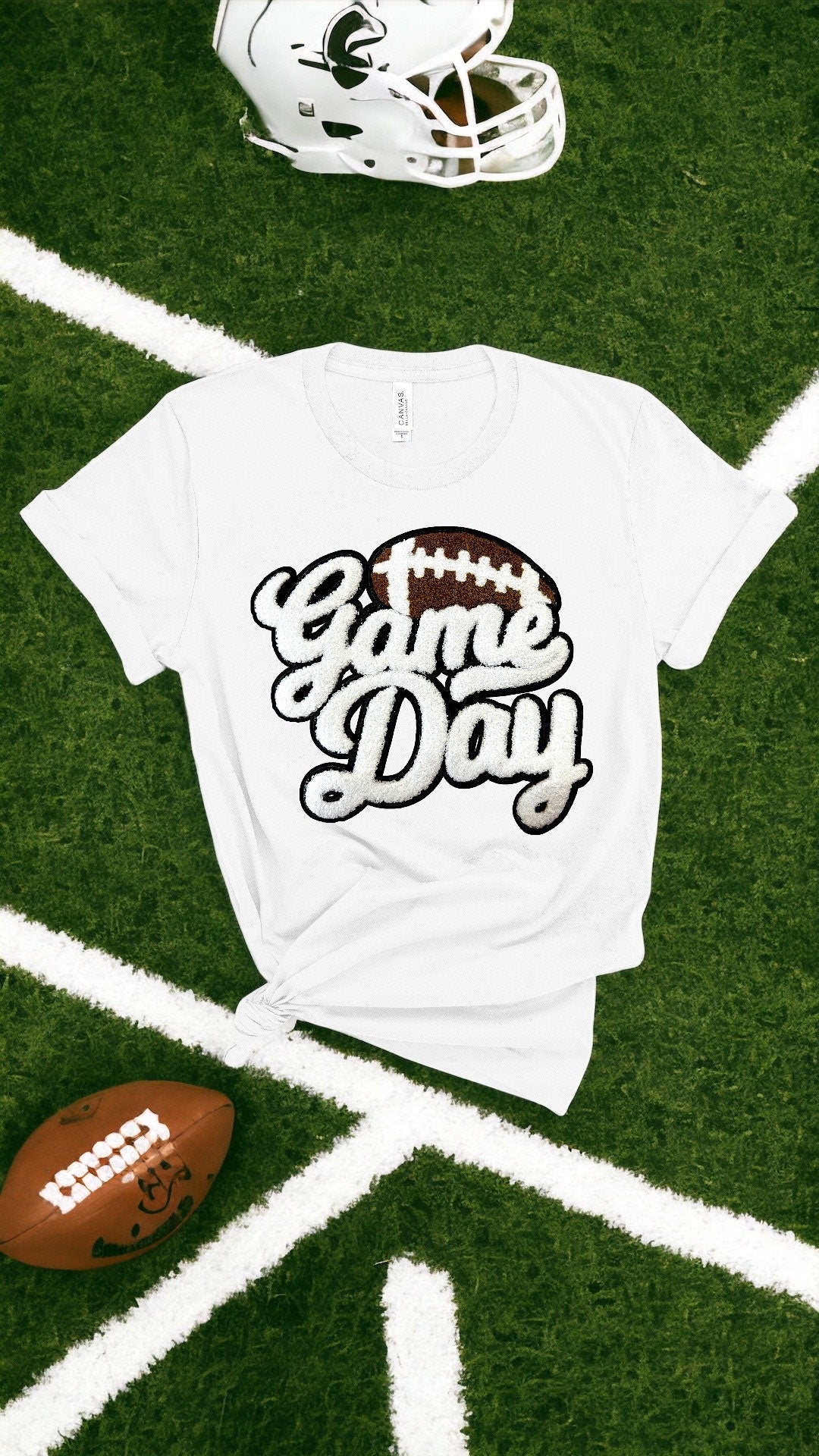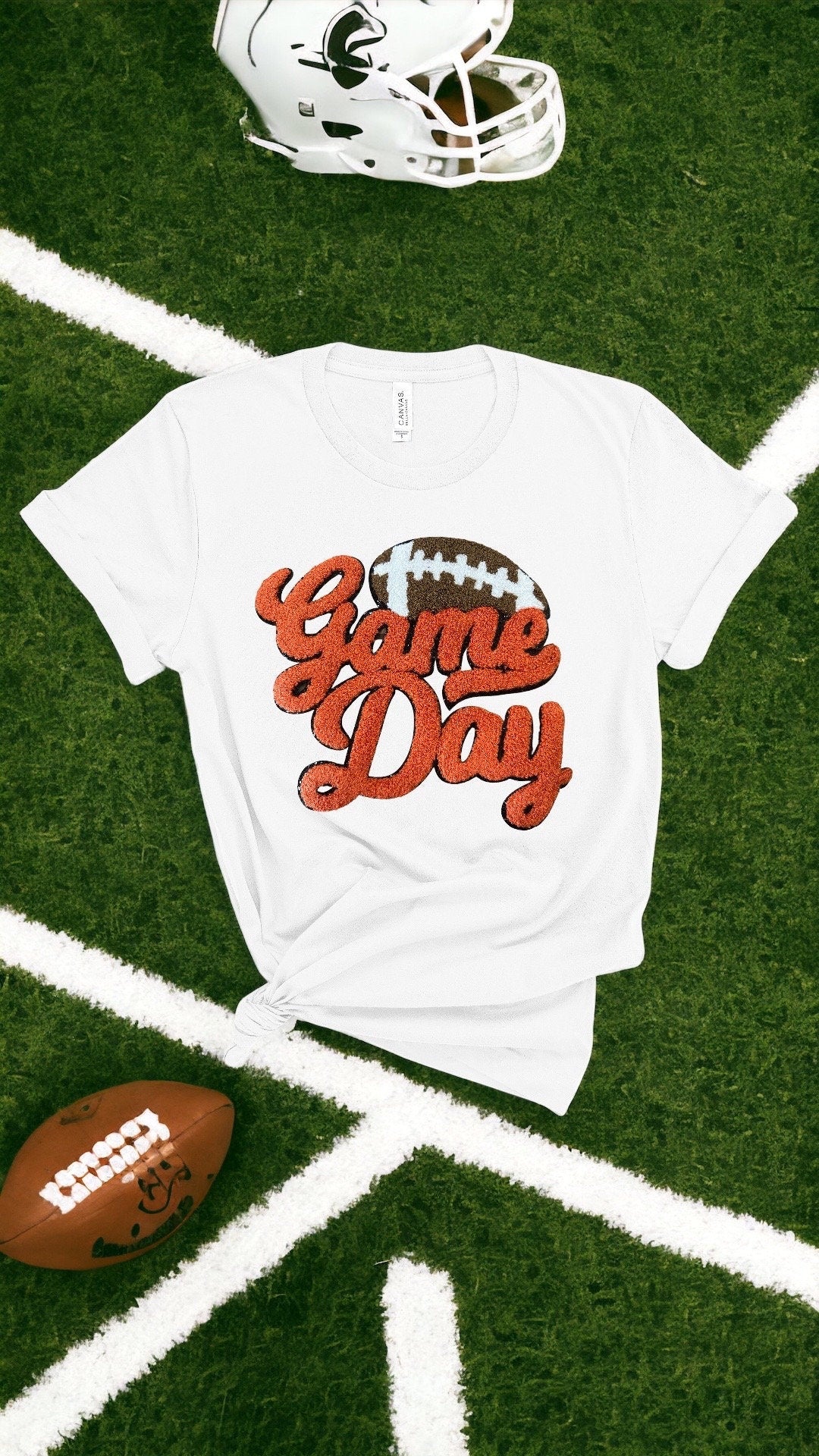 Game Day -Football Patch - Iron On -Orange Chenille Patch, chenille letters, football team mom sweatshirt, game day sweatshirt 9”