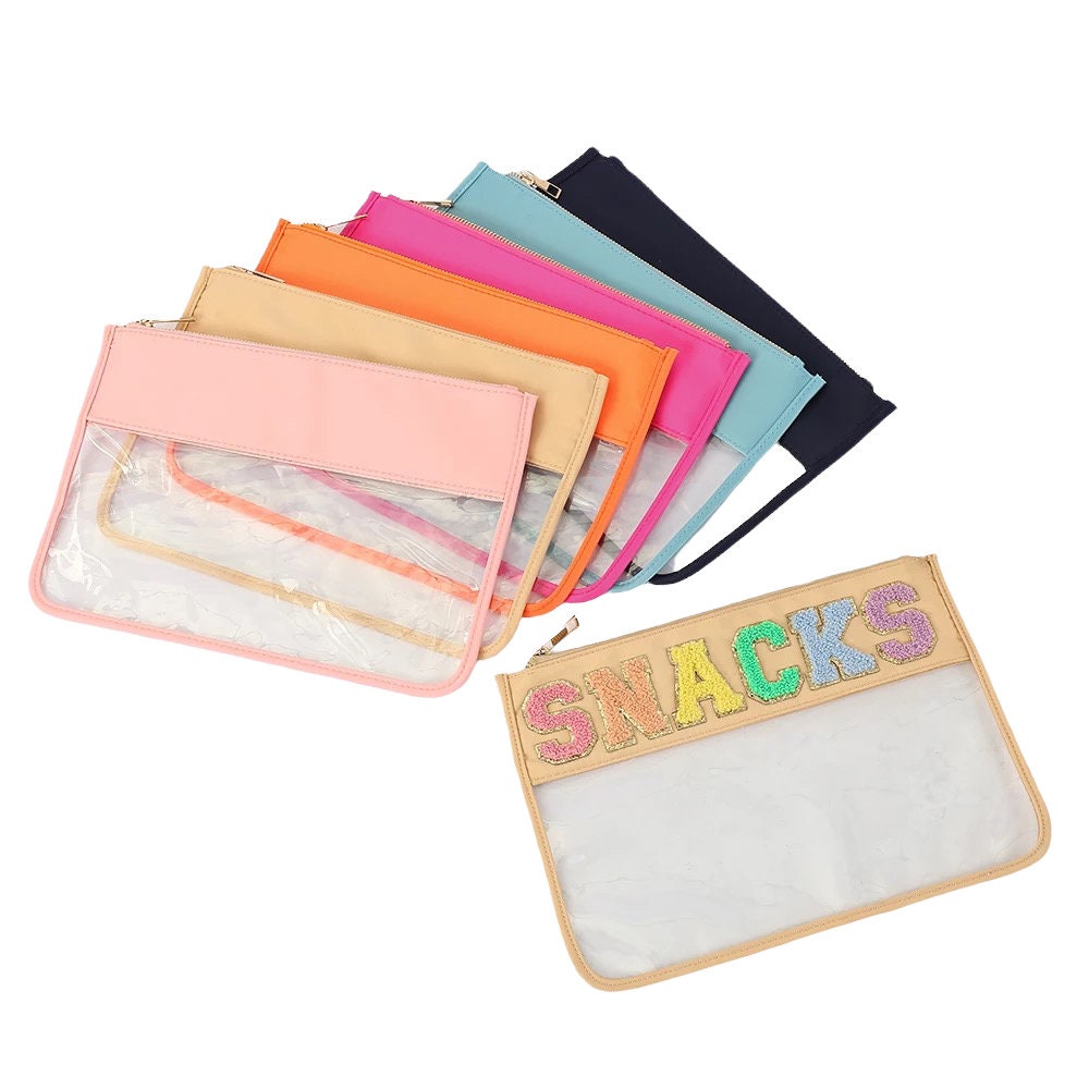 2 Sizes- Clear Nylon Cosmetic Bag - DIY Customizable w Glitter Varsity Letter Initial Patches Makeup Bag Nylon Clear Snacks Pouch- BAG ONLY