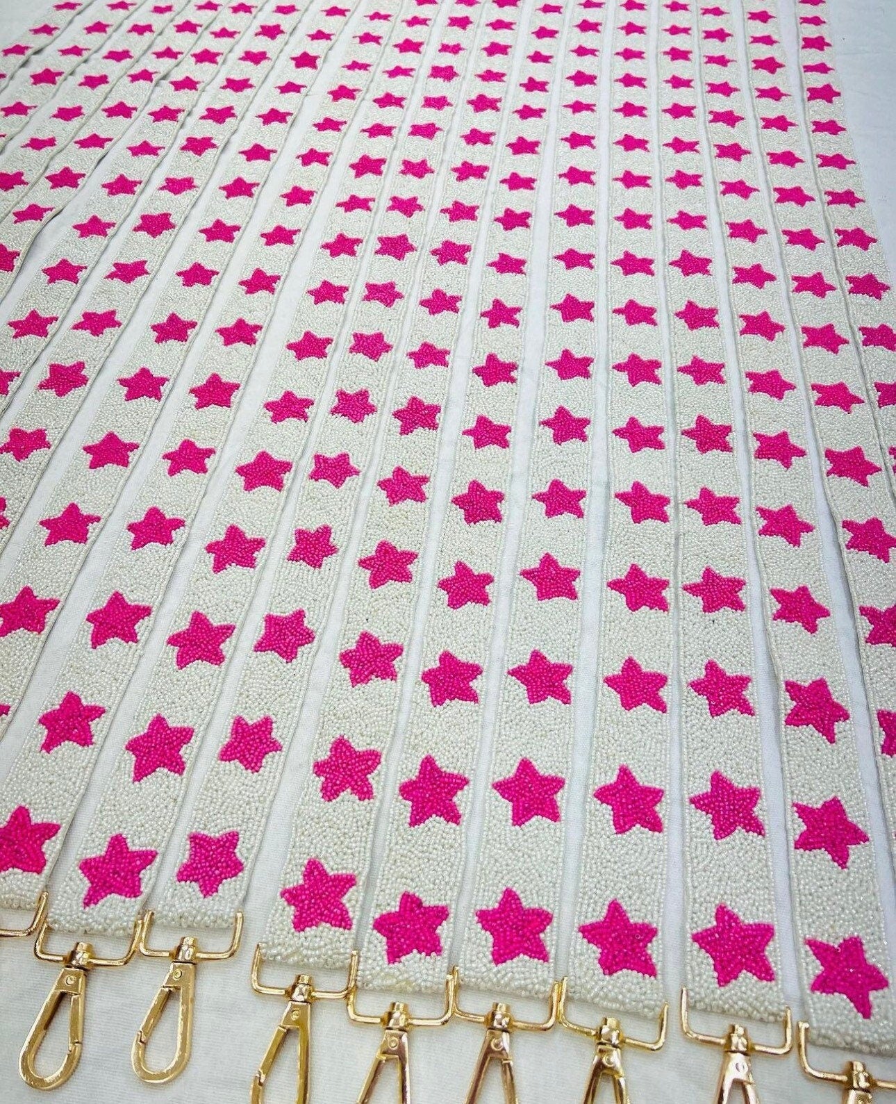 Pink Star - Country Concert Adjustable Beaded Strap |Perfect for Stadium Bags Concert- Clear Nylon Bags -STRAP ONLY - Valentines day