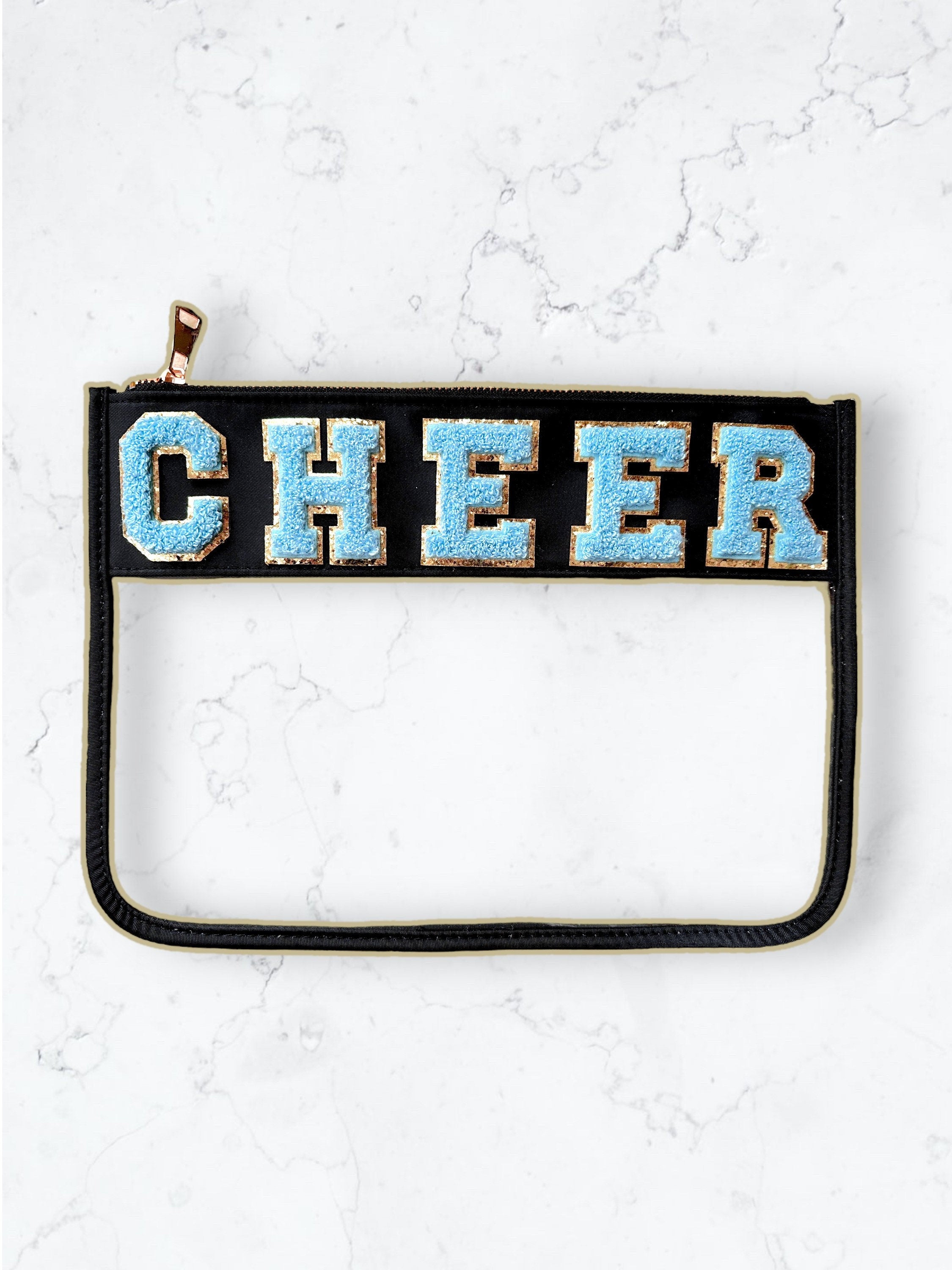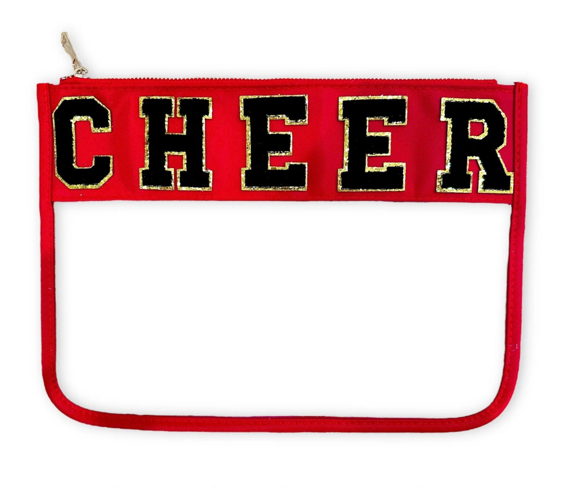 Cheer Gift - Cheer Team, Cheer Mom Nylon Bag, Cosmetic Bag -Glitter Varsity Letter Patches Makeup Clear Snacks Pouch