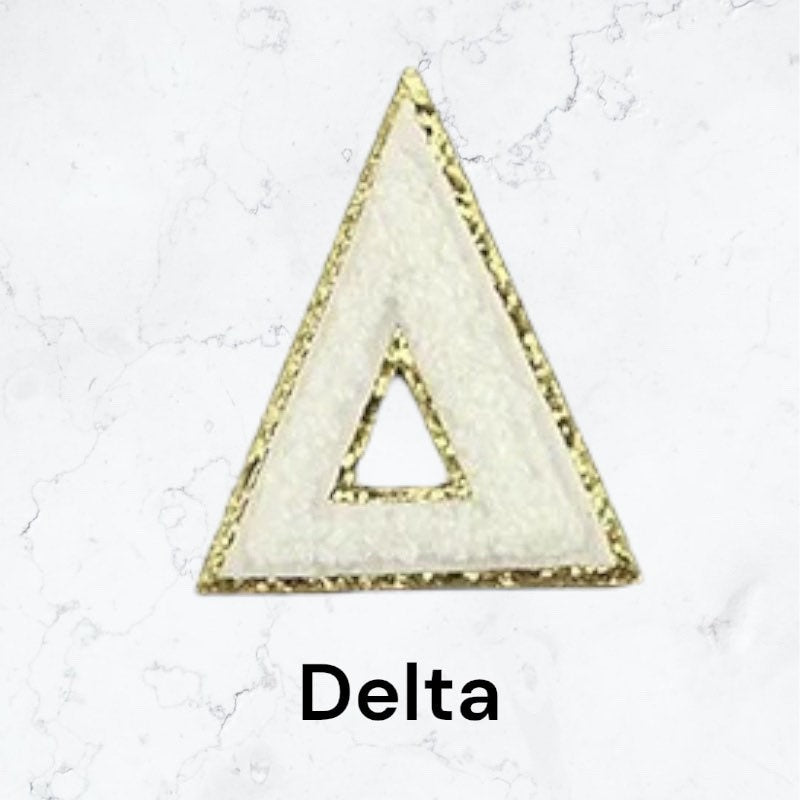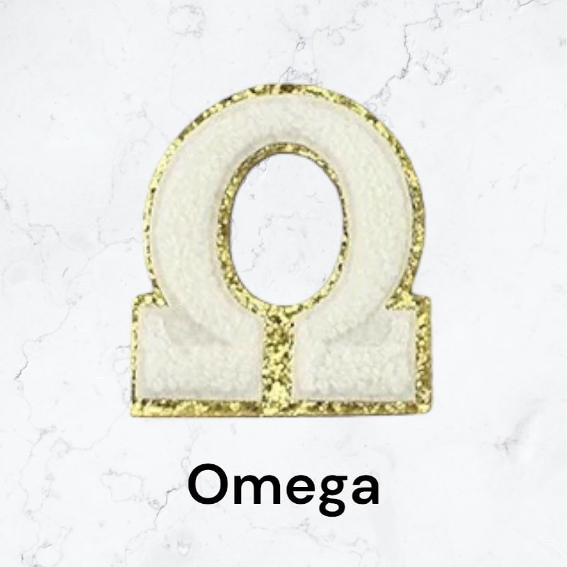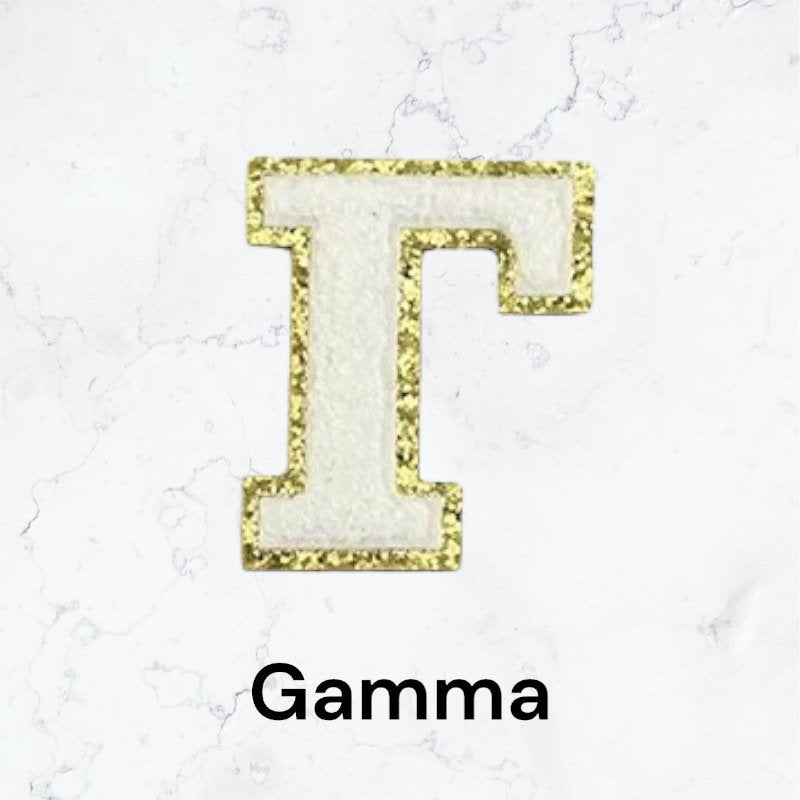 Greek Letter Patch - Self Adhesive - Chenille Alphabet Diy Gold Glitter Trim Varsity Letter Perfect for Nylon Pouch cosmetic DIY embroidery