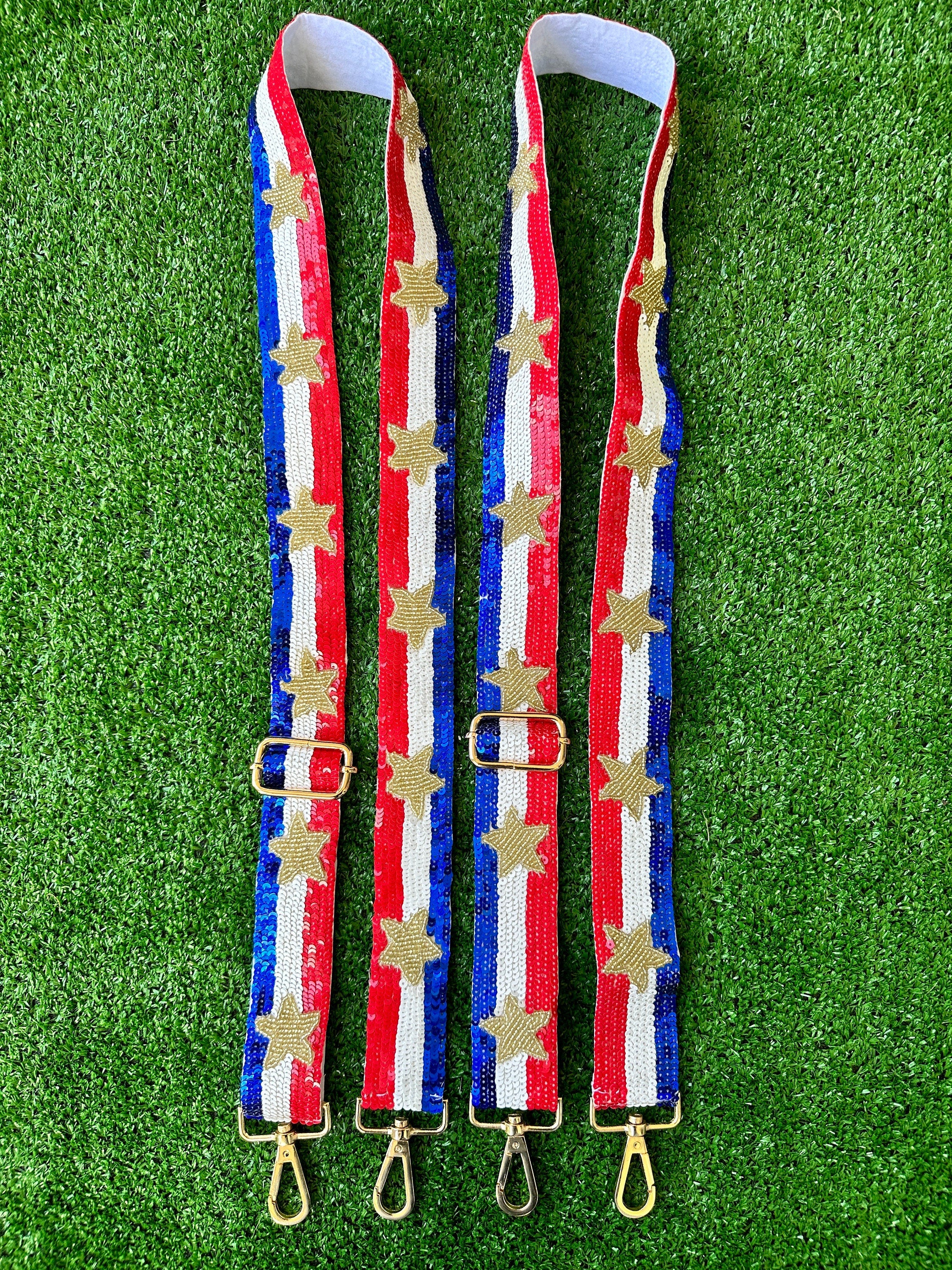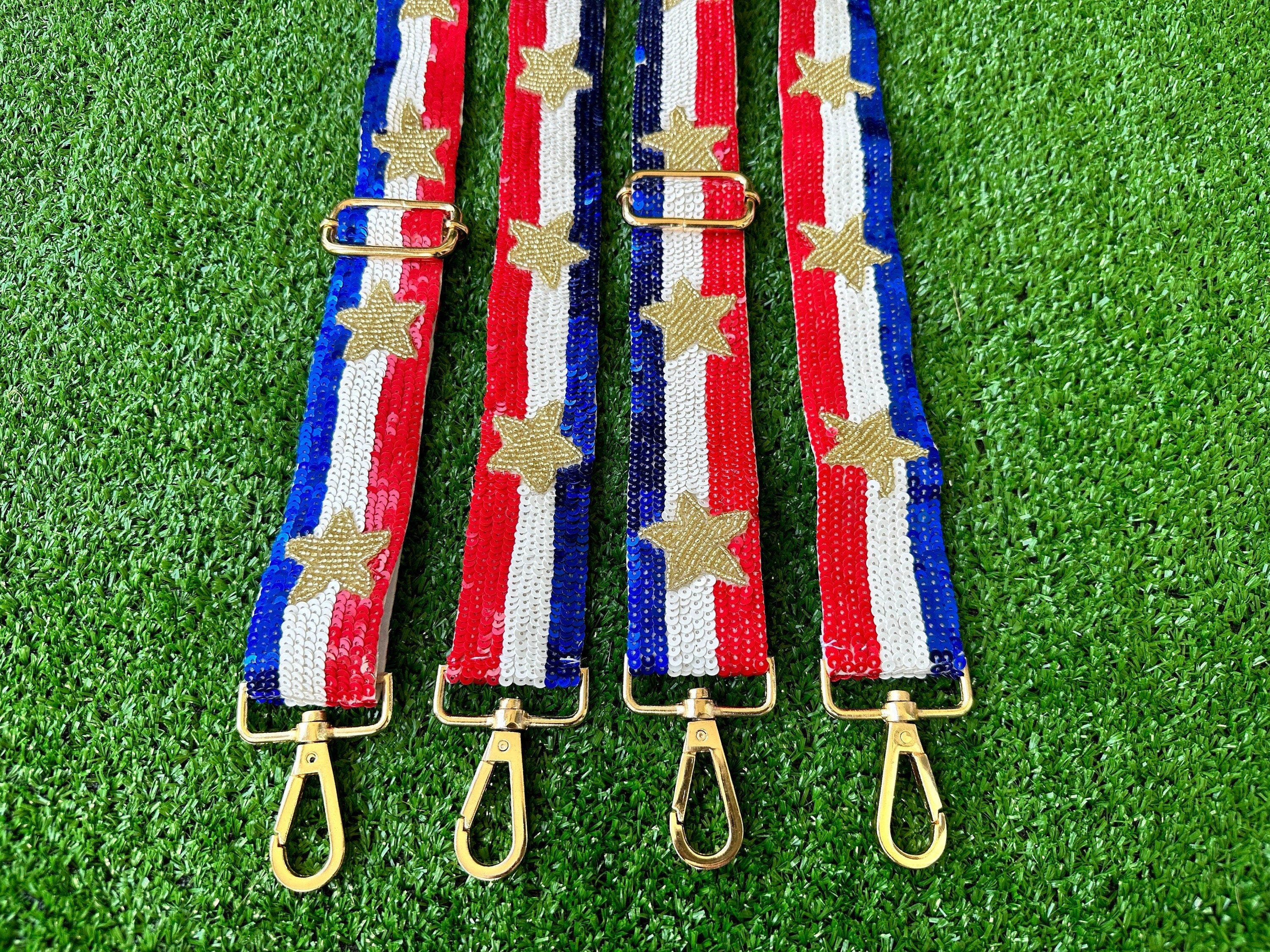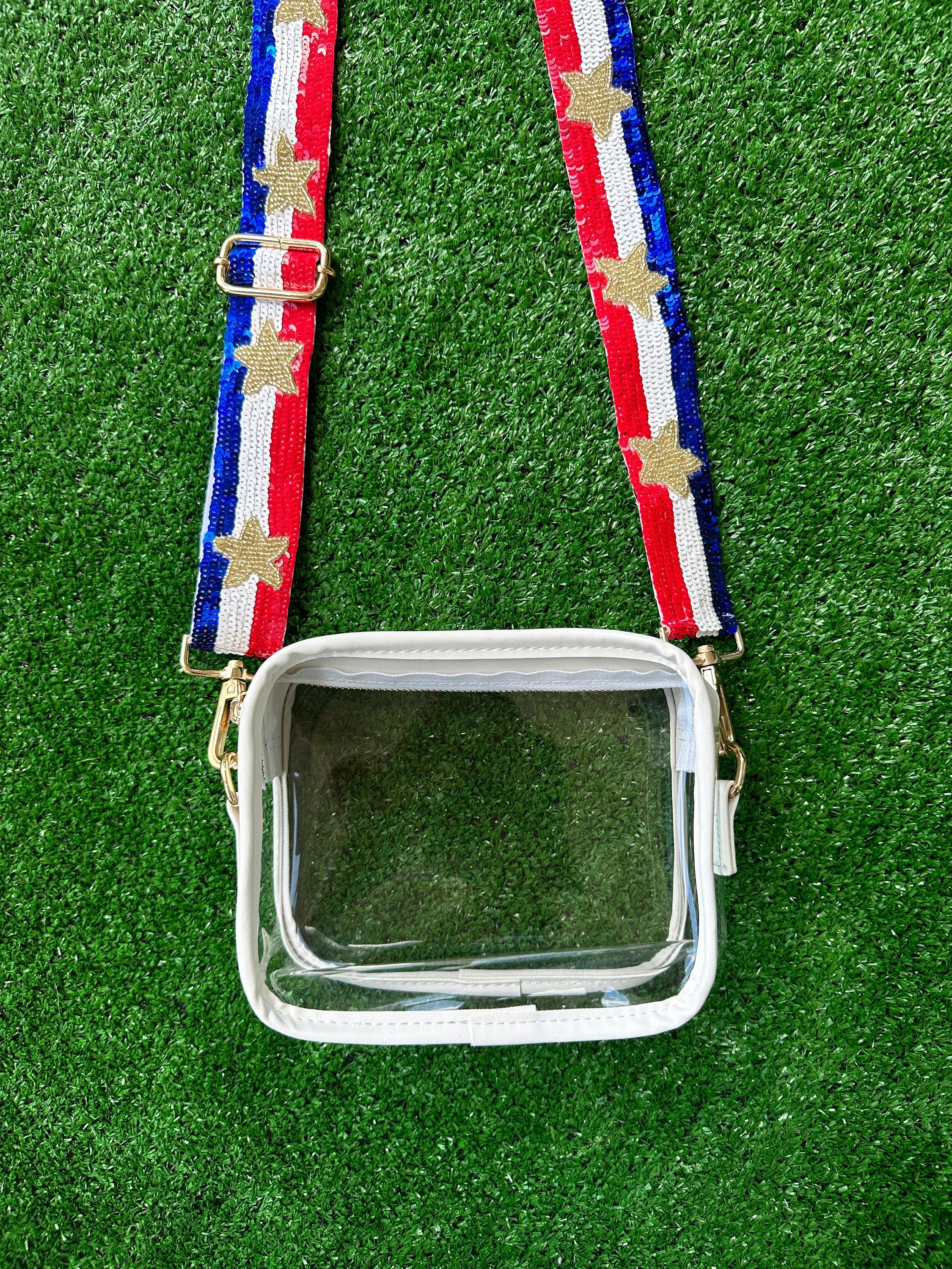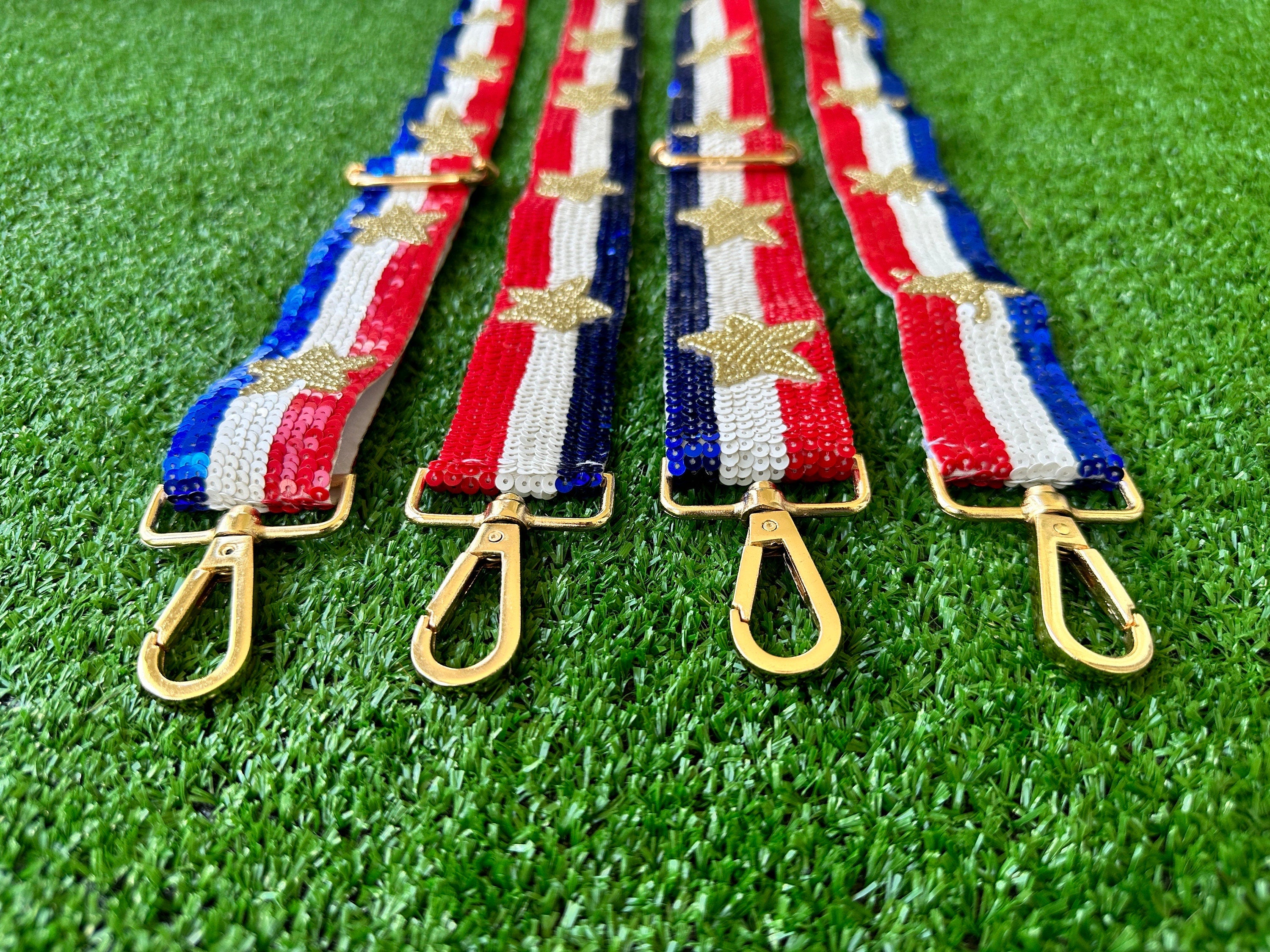 Game Day Bag Strap - Adjustable Beaded Strap— Perfect for Stadium Bags- Sports Strap- Clear Nylon Bags - red white blue concert
