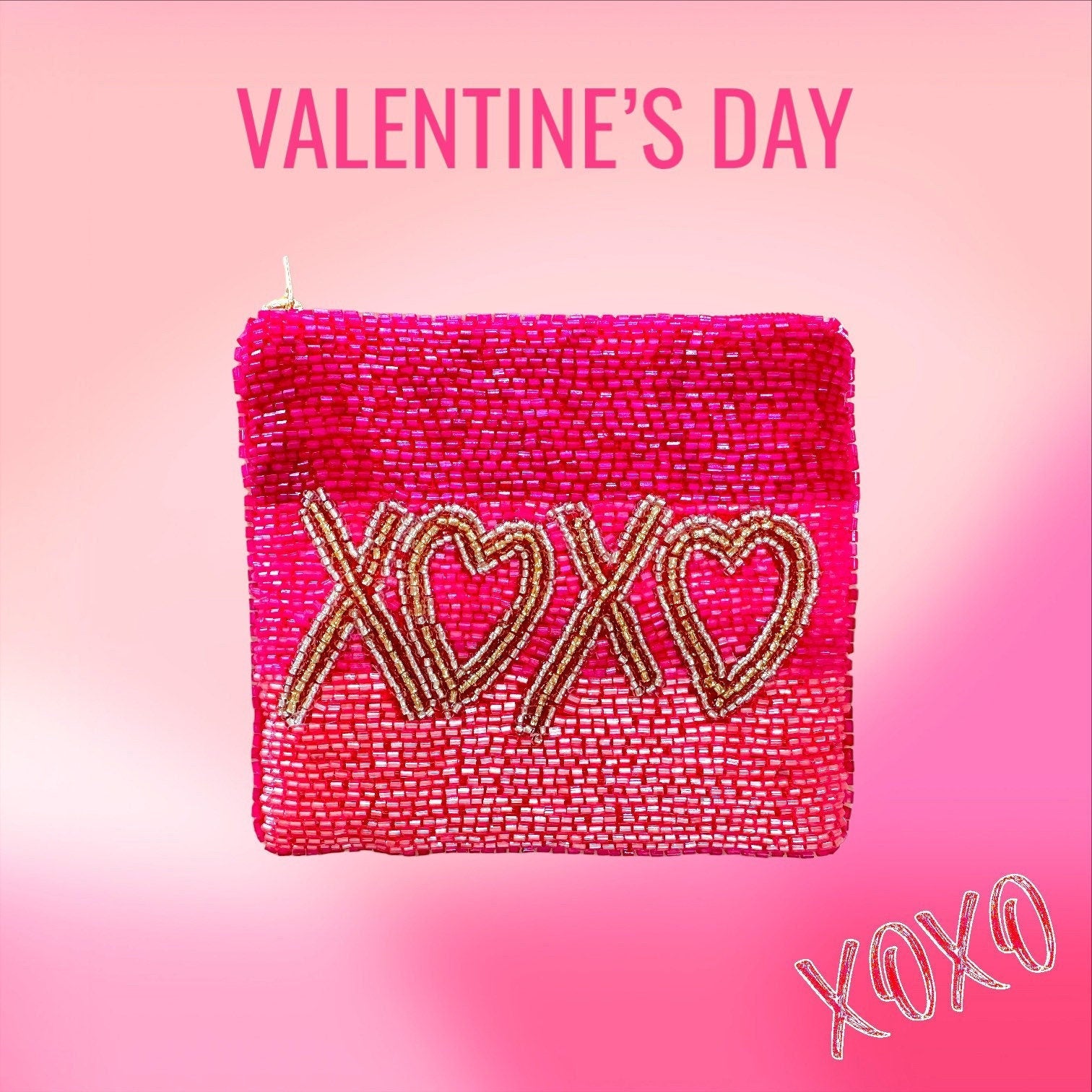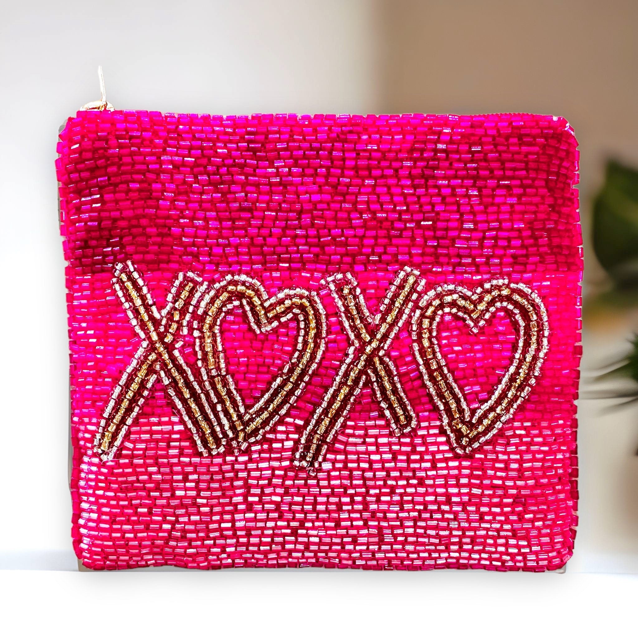 XoXo Coin Purse - Seed Beaded Coin Purse Wallet - Handmade beaded clutch insert- Gifts for her - Zippered Pouch - Valentines Day Gift