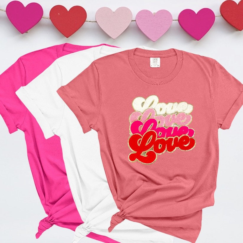 Valentine's day - Love Chenille Patch- Iron On- Patch Only - Eras Fuzzy Chenille DIY Patch Glitter Varsity Nylon Pouch - Swift Shirt