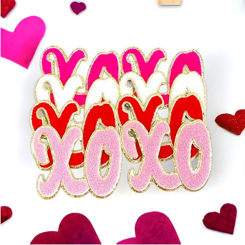 XoXo - Chenille Patch- Valentine's day Iron On- Patch Only - Fuzzy Chenille DIY Patch Glitter Varsity Nylon Pouch - Shirt