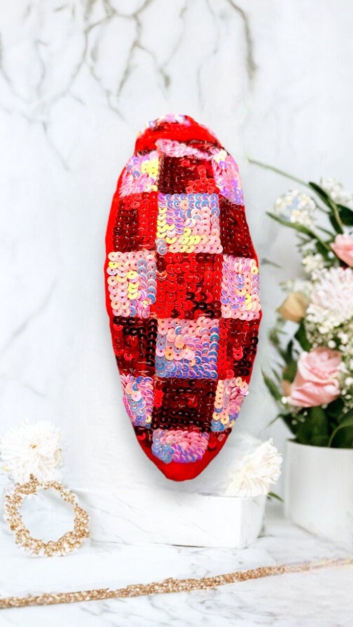 Sequin Headband - Valentine’s Headband - Top Knot Hand Sewn Headband for Women- Crystal beaded hairband- pink Valentine’s Day