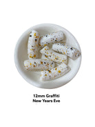 12mm Holiday Graffiti- New Years Eve Gold Graffiti Paint Splatter Beads - 10mm ( 12 mm) Acrylic Tube Beads, Curved Tube Bead