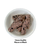 12mm Mauve Graffiti Paint Splatter Beads - Mauve w black paint ( 10 mm) Acrylic Tube Beads, Curved Tube Bead, Resin Lucite Bracelet