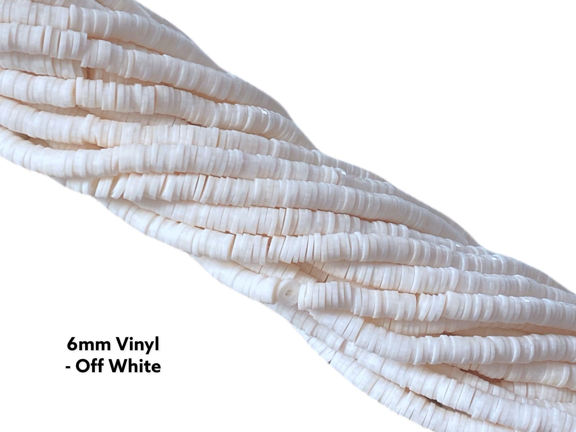 6mm Off white Vinyl Heishi Disc Beads - Polymer Clay African Vinyl Disc Beads