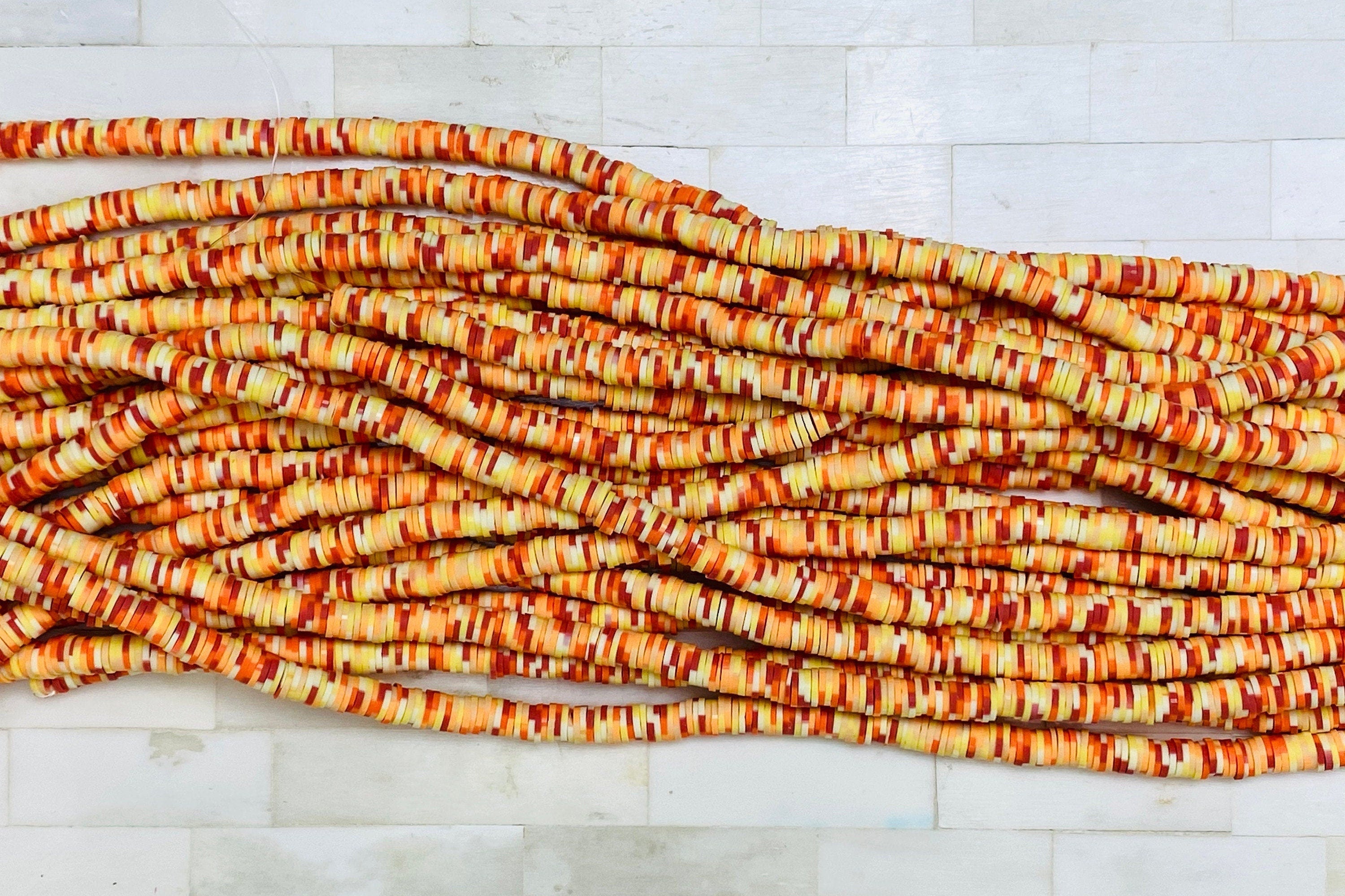 6mm Orange / Yellow Mixed Vinyl Heishi Beads - Vinyl Beads Polymer Clay African Disc Beads