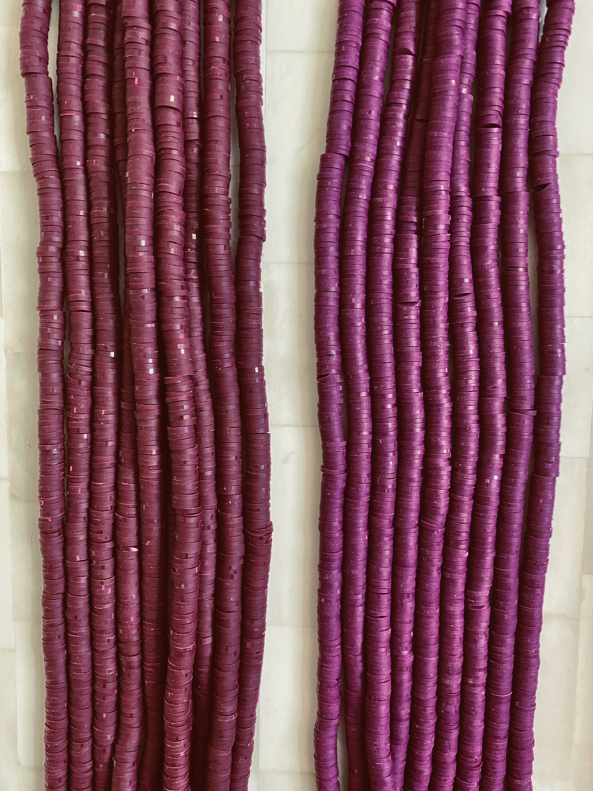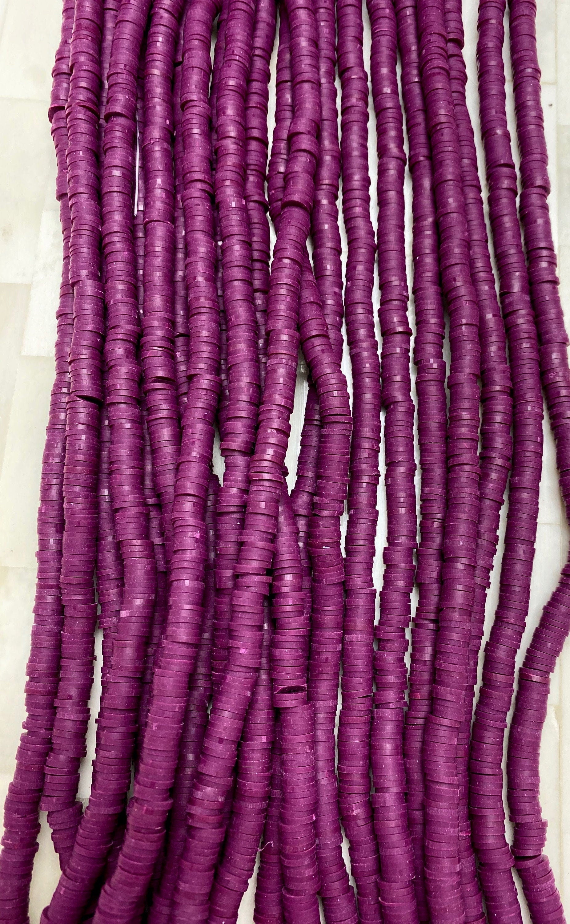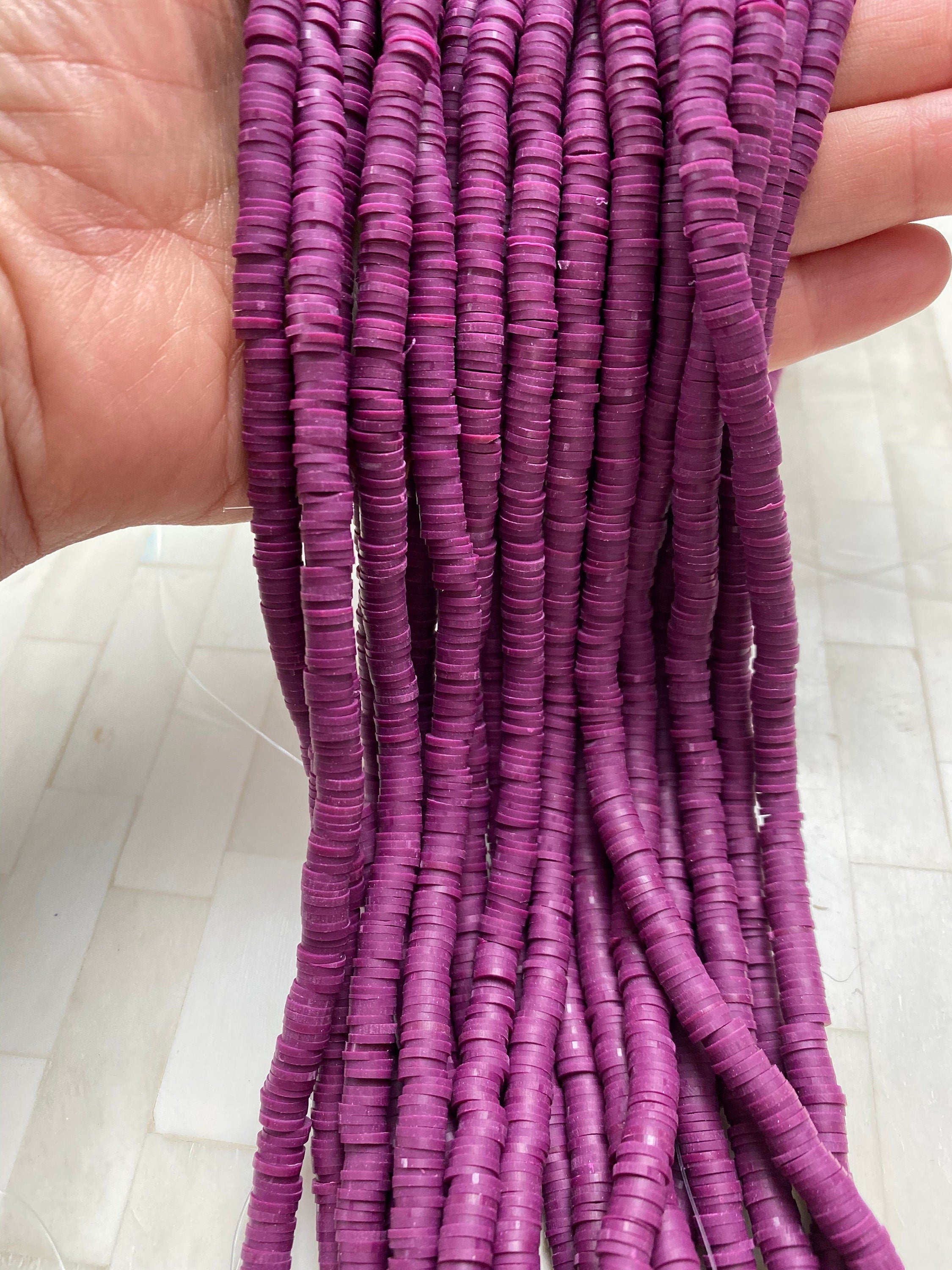 A classic Plum Vinyl Heishi Beads, yet trendy look that easy to make and fun to wear. Our Bamboo beads are beautiful quality and seamless.
