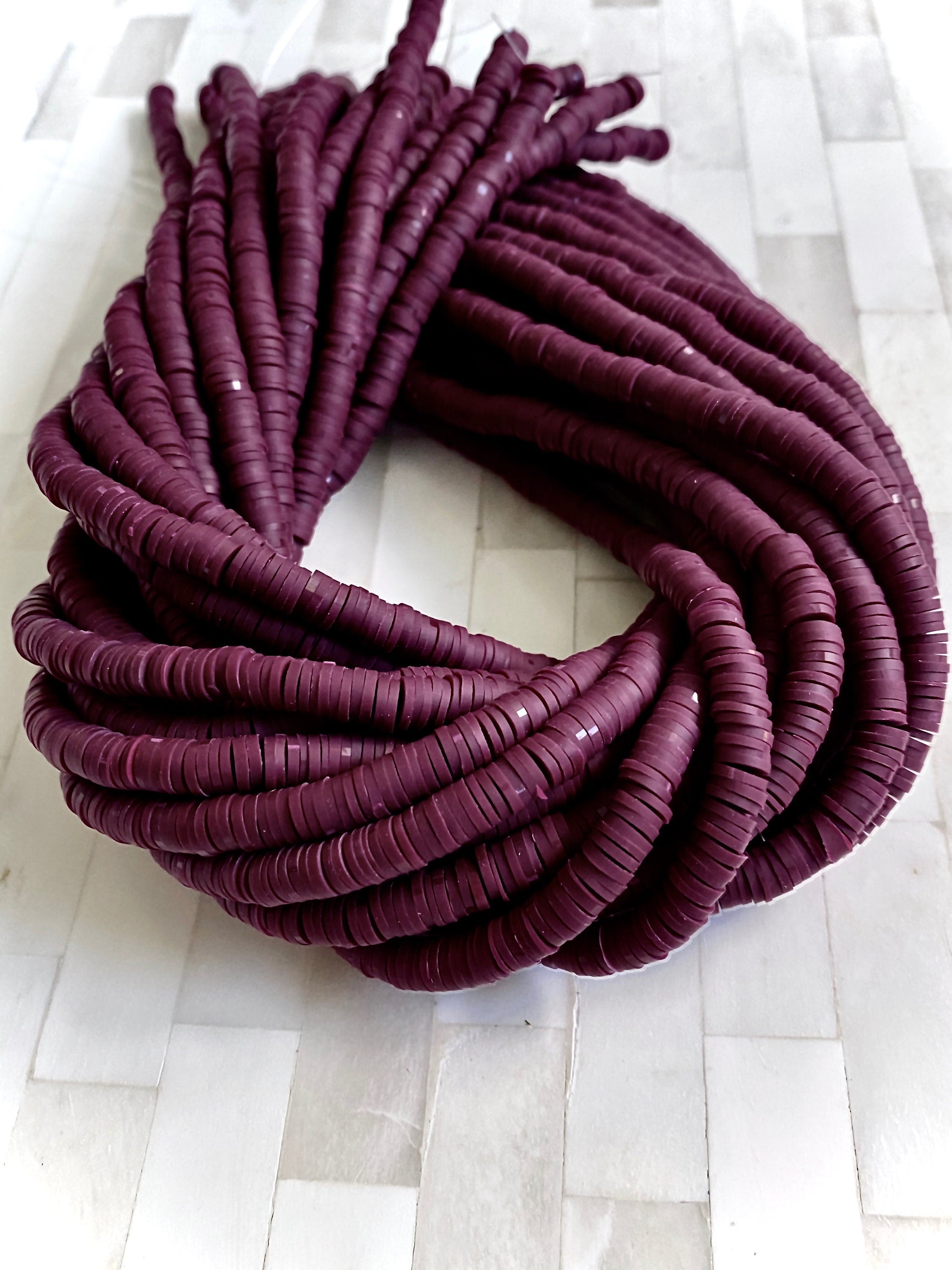 6mm Plum Vinyl Heishi Beads - Wine Red Vinyl Beads - Polymer Clay African Vinyl Disc Beads