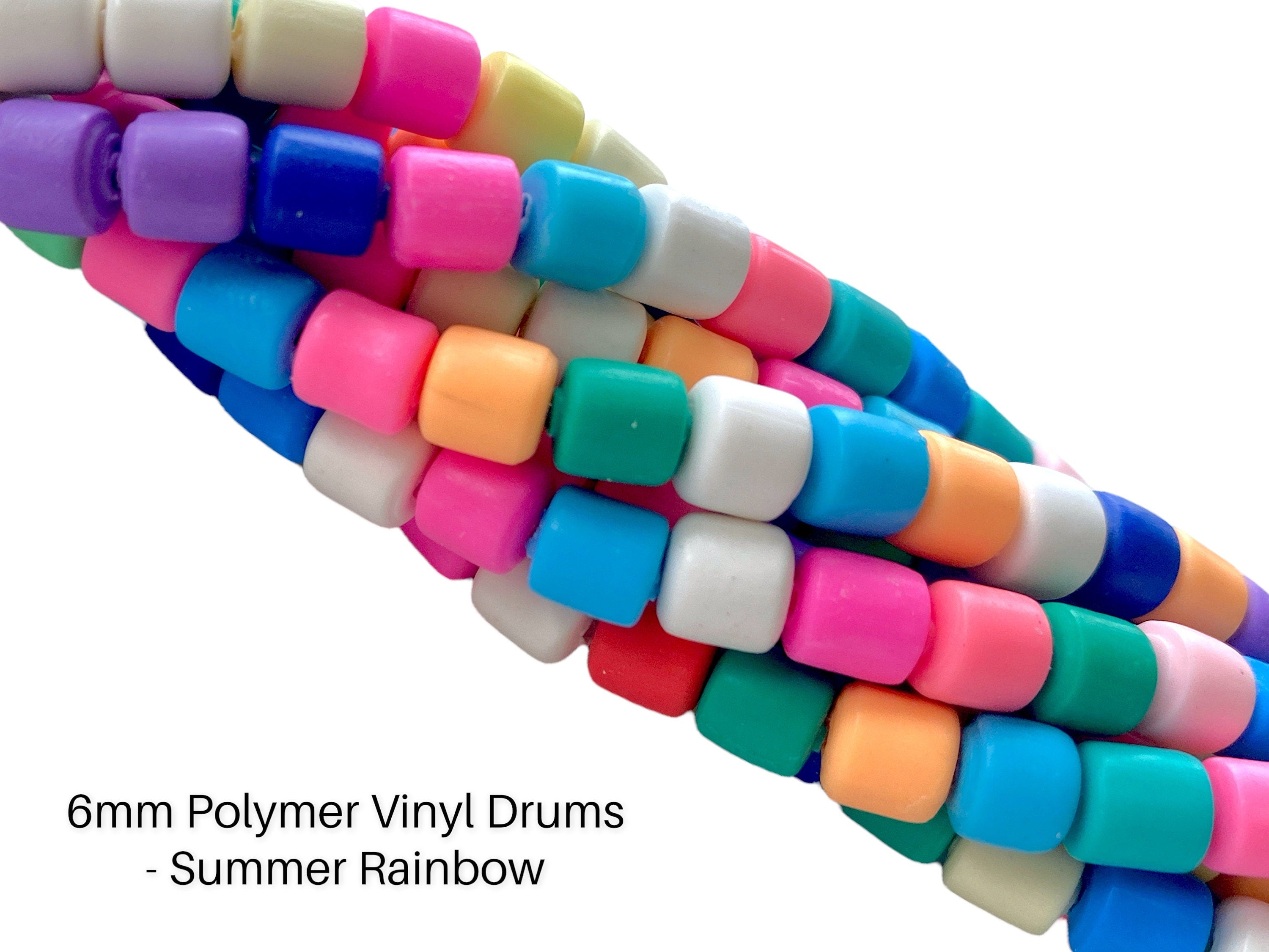 6mm Tube Polymer Clay Beads, Tube Barrel Beads, Polymer Clay Drum Bead, African Vinyl Barrel Beads, Strand 15"