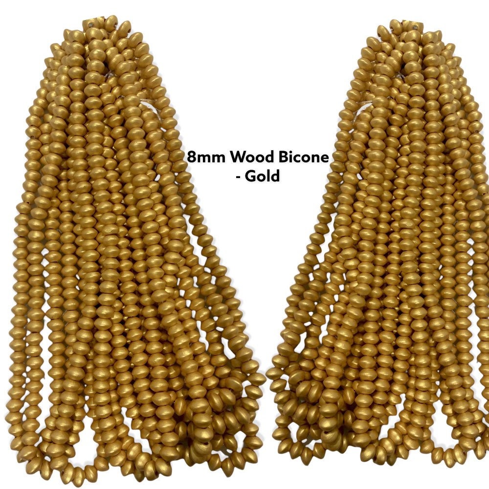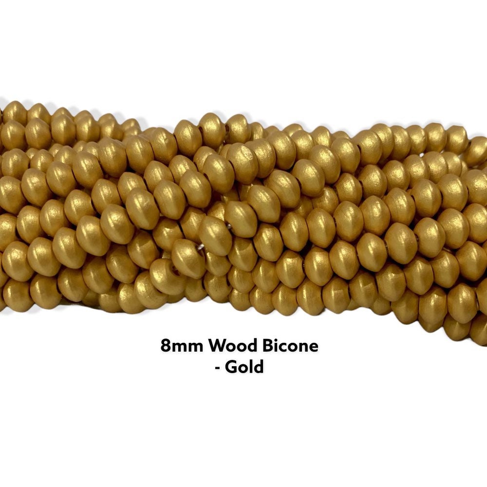 8mm Gold Metallic Wood Saucer Beads- Natural Wood 15” Strand for jewelry making Bicone wood bead bracelet- matte gold