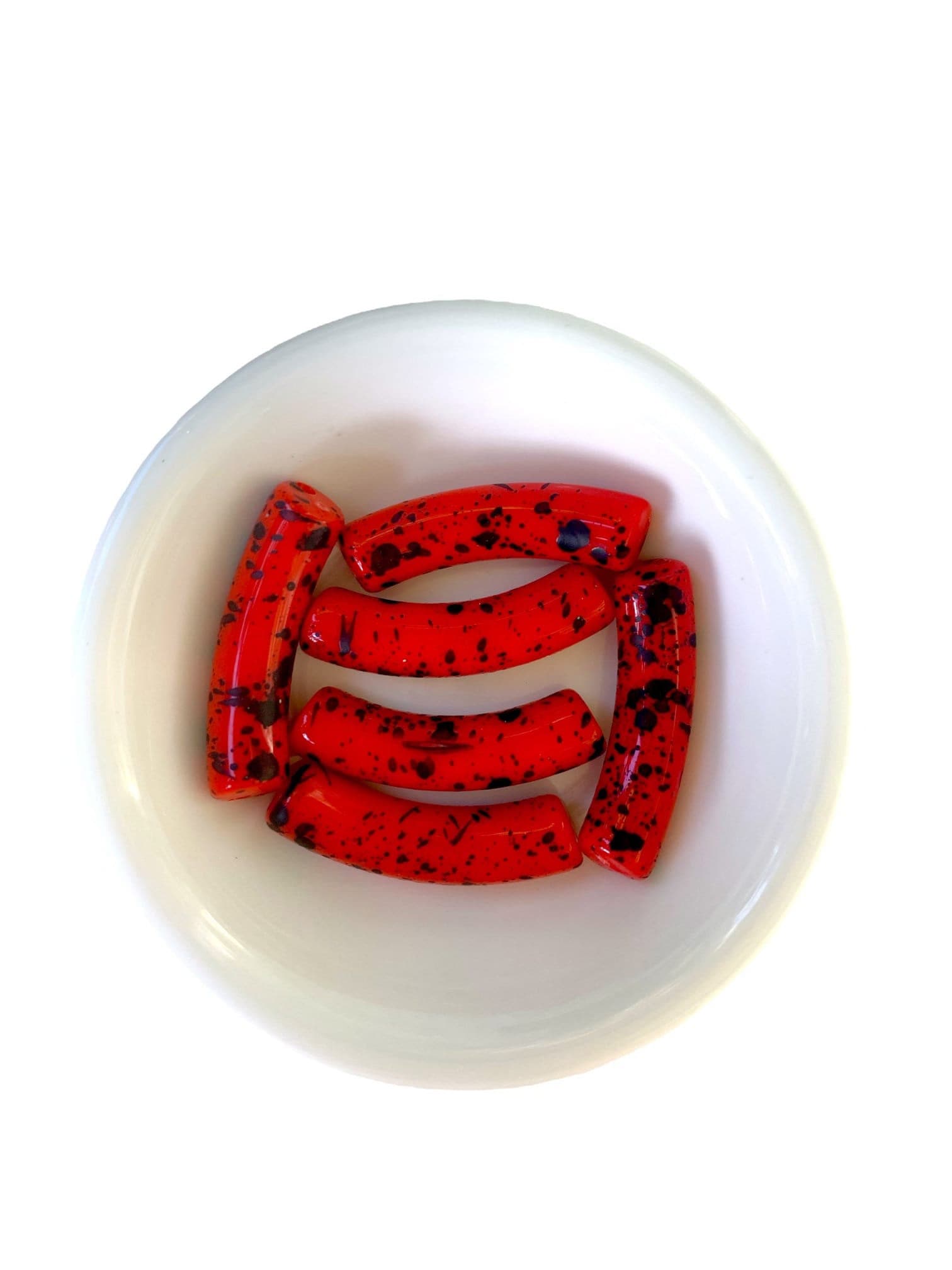 8mm -Graffiti Red - 8mm Red & Back Graffiti Acrylic - Small Acrylic Tube Beads, Georgia Bull Curved Tube Beads, Sports Team Bangle Acrylic