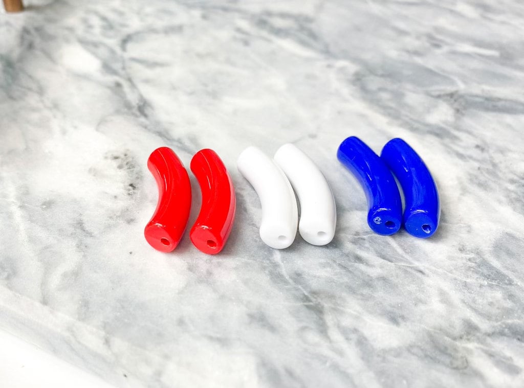 8mm USA Acrylic Tube Beads- 4th of July Memorial Day Pack , Red White Blue - Bamboo Beads, Curved Tube Beads, Resin 8 mm x 35mm, Bracelet