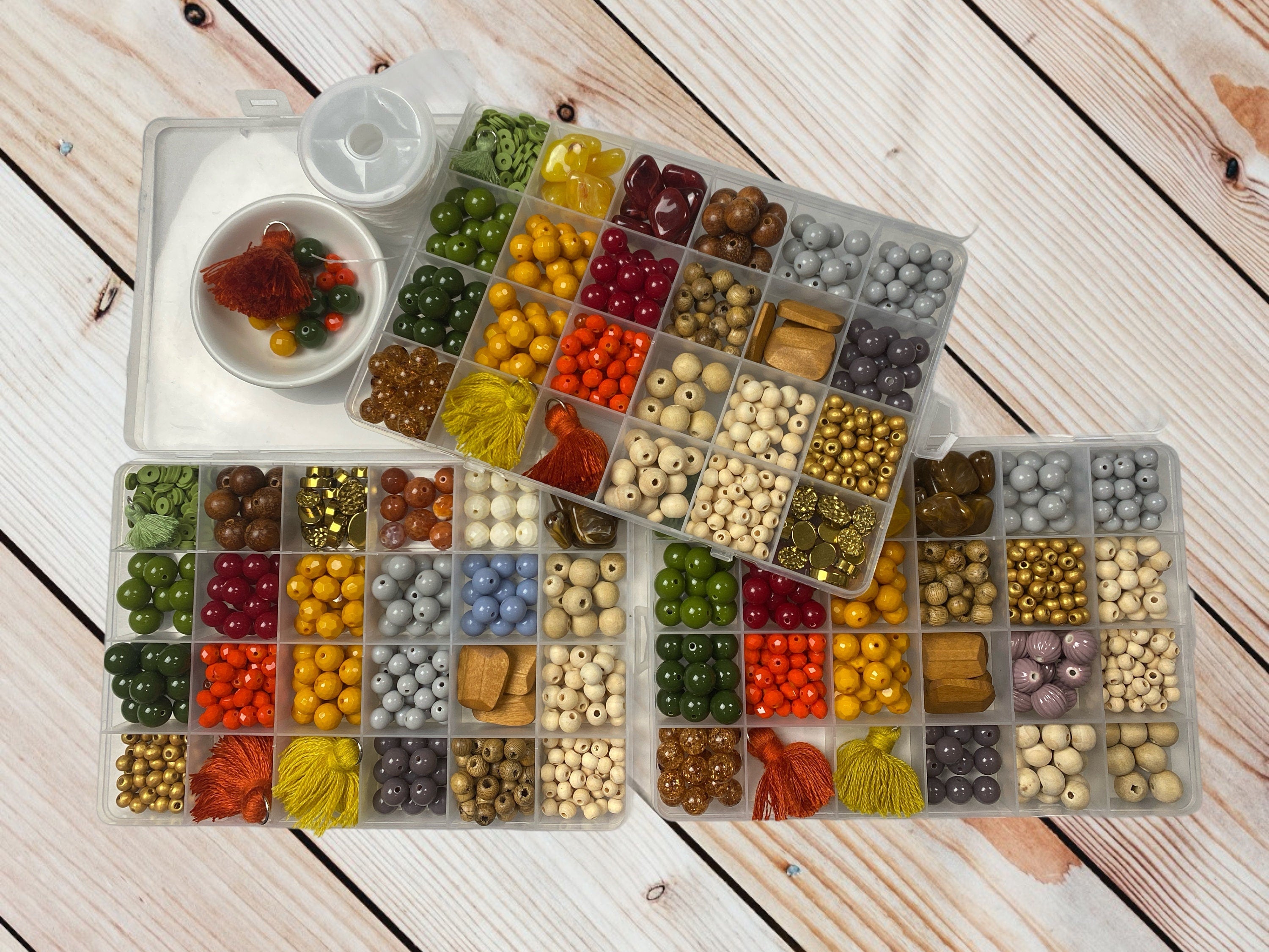 Fall Beads Kit- Kids beads, Diy bead kit, Orange , Mustard muted colors box, friendship bracelet, kids gift, birthday gift,