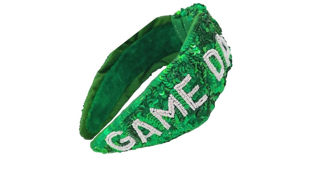 Game Day- Green Sequin Football Headbands -Game Day Headbands- Accessories Gameday Jeweled Knotted Headbands Women, College Football Girls