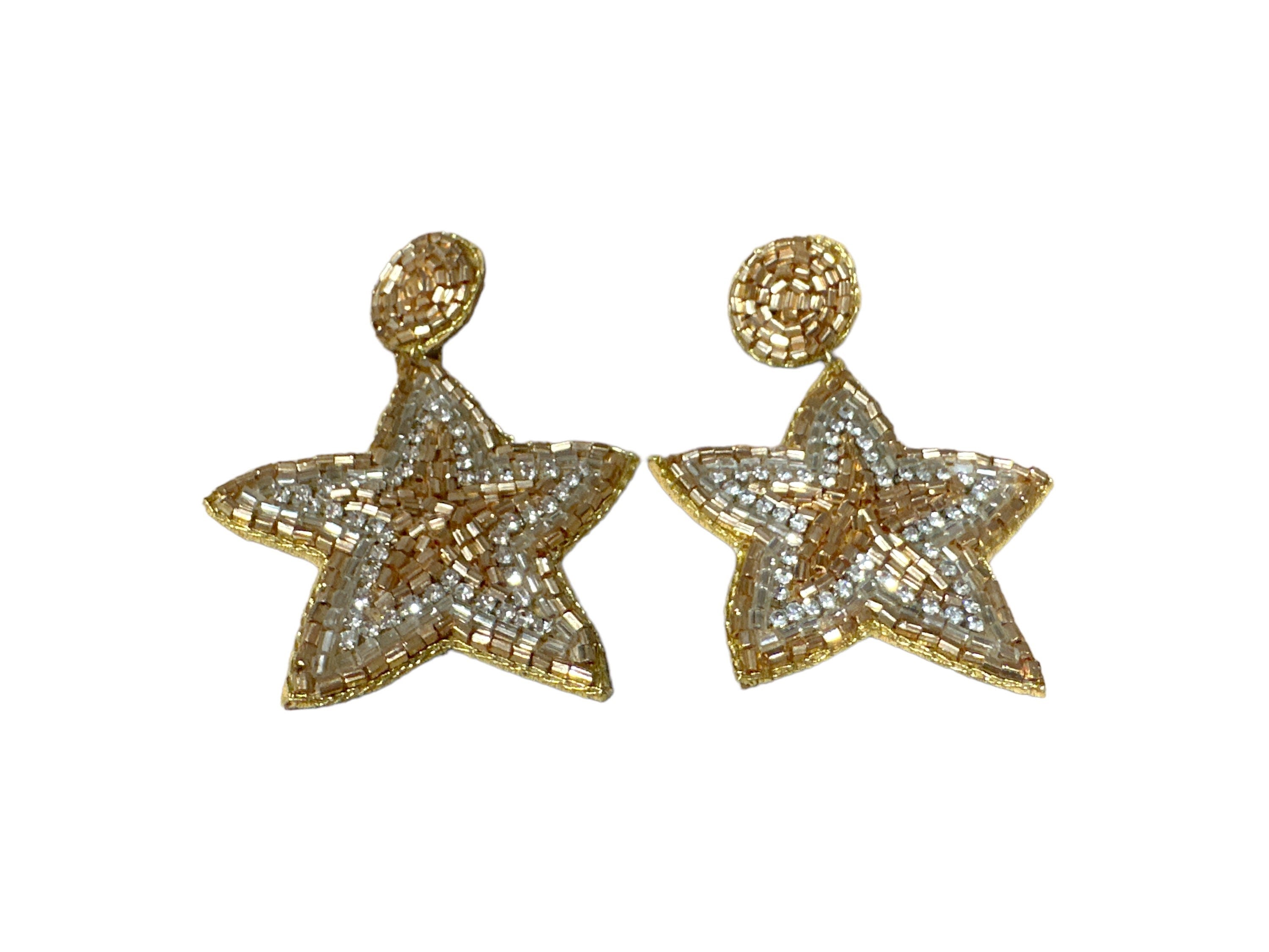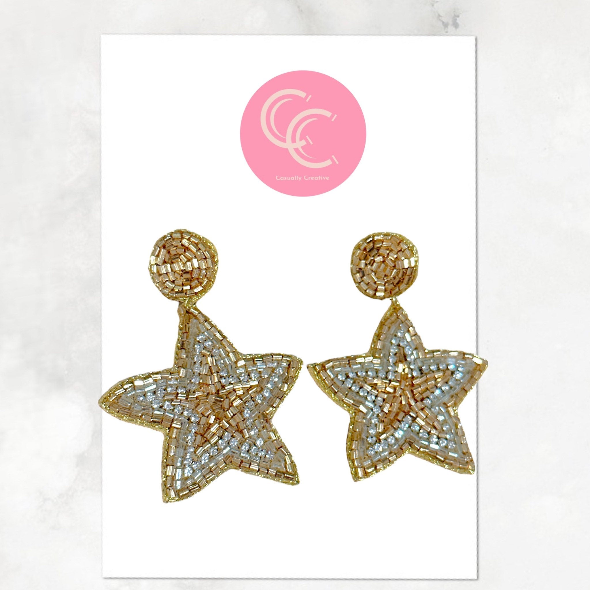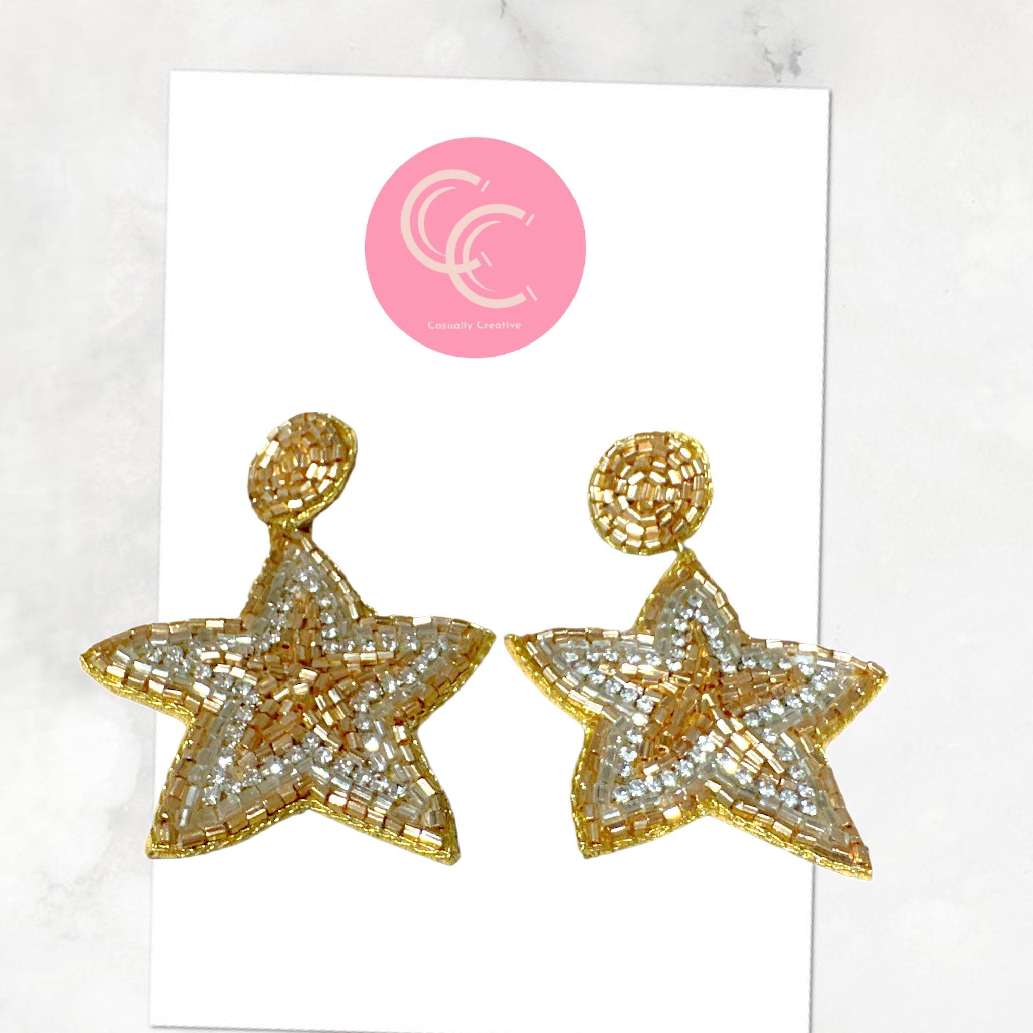 Gold & Silver Star Earrings - New Year's eve Earring - Beaded Earrings- Seed Bead Earrings - Southern Jewelry- Statement Earrings- Swiftie