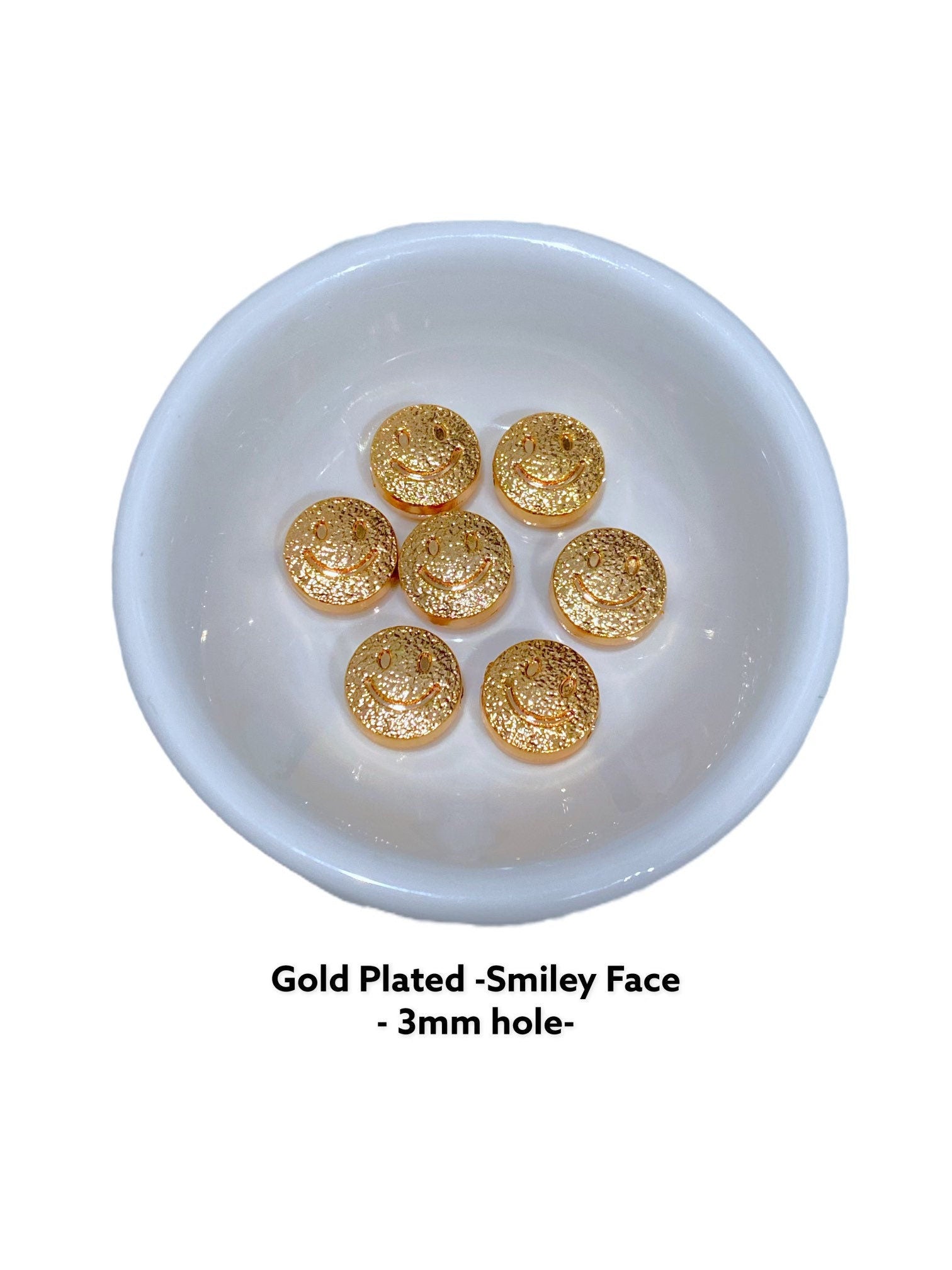 Smiley Face Gold Accent- Forte Plated Accent Beads- Florentine finish happy face Pairs with Forte Gemstone Beads- Lorex Cord Bracelet