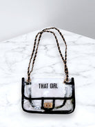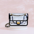 Introducing our Clear Stadium Bag with Designer Features and Luxurious Gold Accents! Elevate your event experience with this stylish and functional accessory that effortlessly combines security compliance with sophisticated aesthetics.