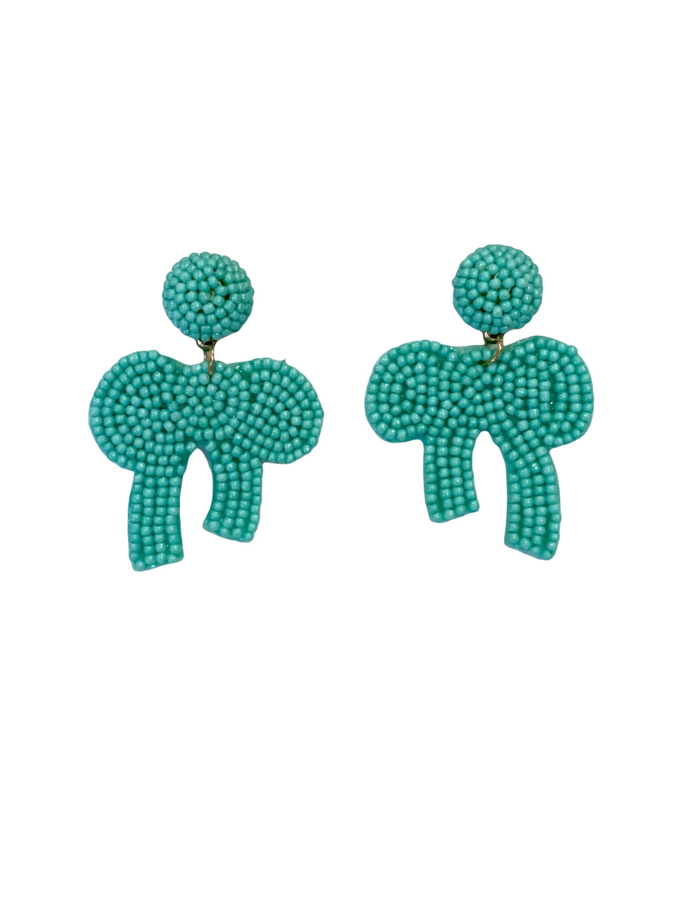 Turquiose Beaded Bow Earrings - Fall Seed Bead Earrings - Southern Statement Jewelry- Fall Turquoise - Statement Earrings- Handmade